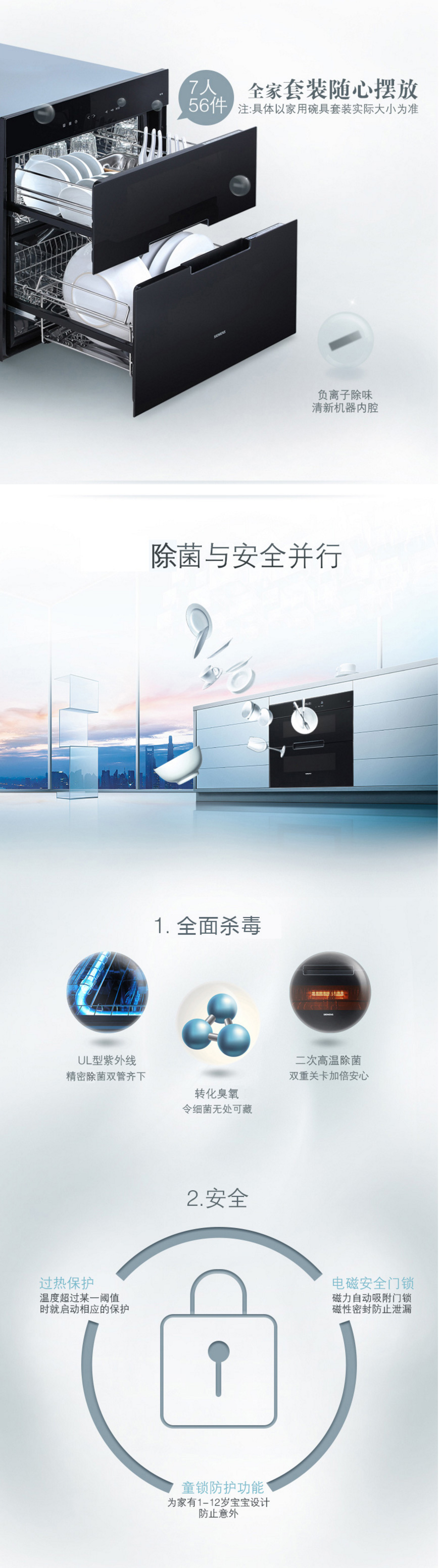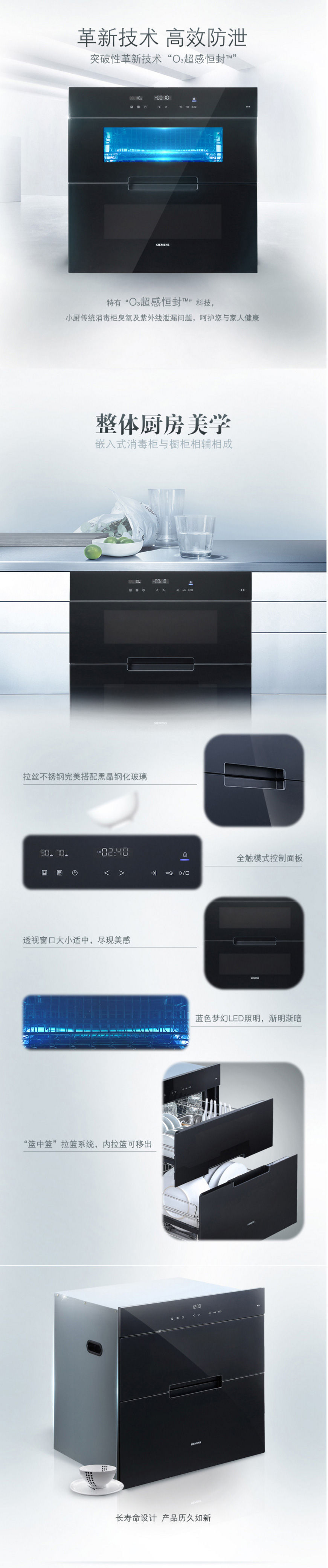 西门子大容量 嵌入式家用消毒柜 隐藏嵌入式HS363600W