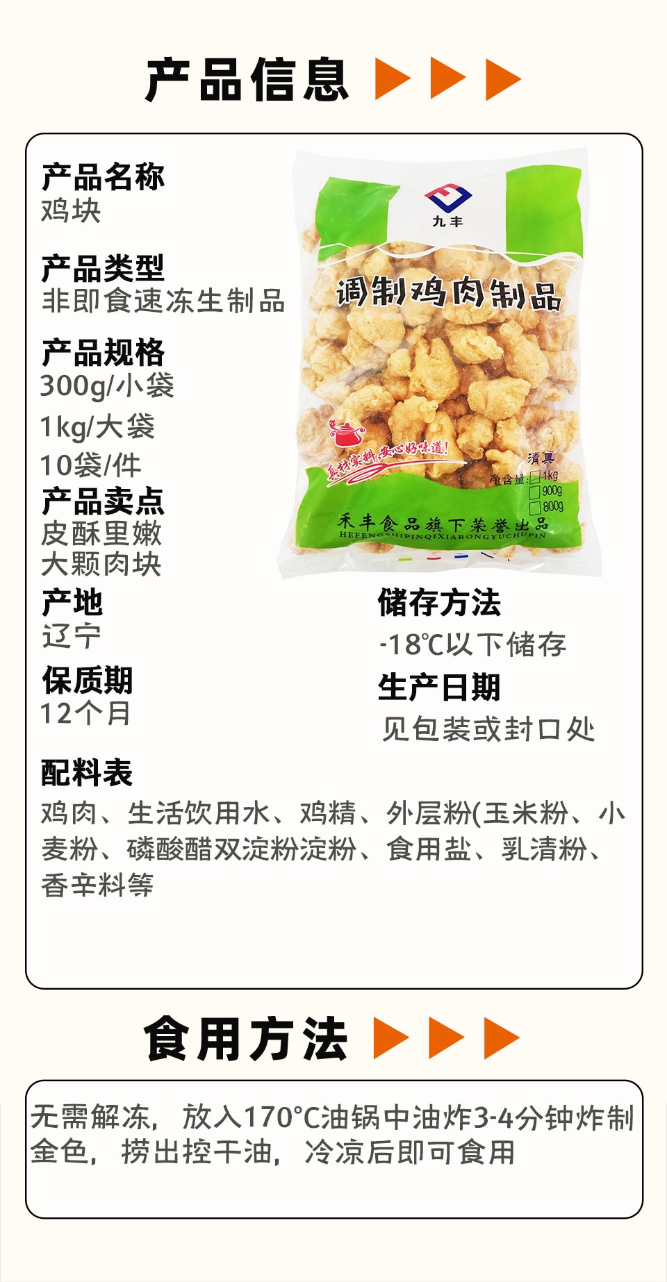 九丰椒麻鸡块 300g/小袋 1kg/大袋 10袋/件