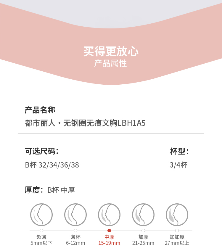 都市丽人无痕B杯无痕内衣中厚泳布无钢圈常规文胸LBH1A5