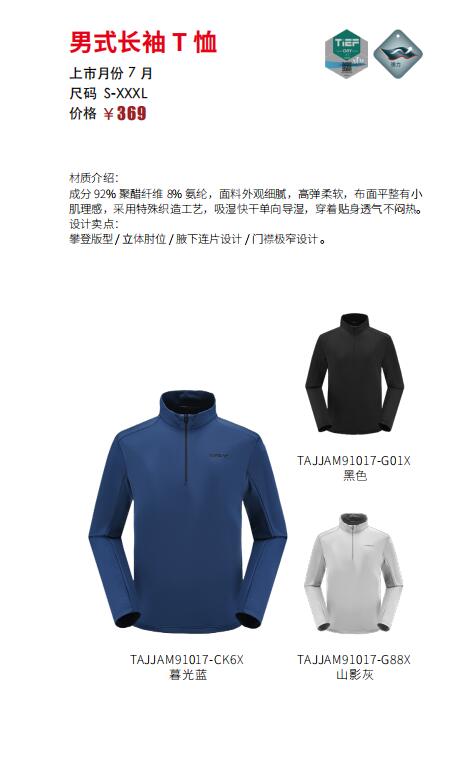 探路者男式长袖T恤TAJJAM91017