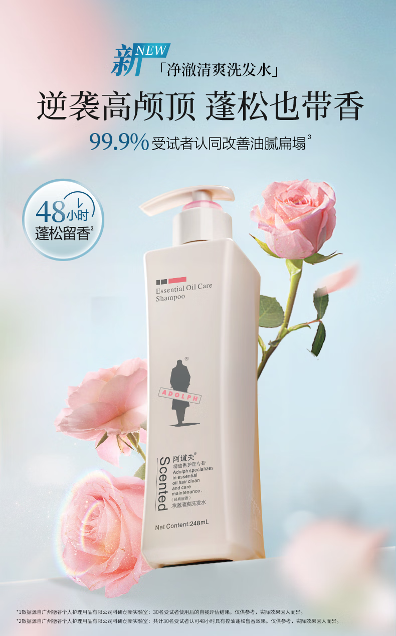 【自营】阿道夫精油香护理专研洗发水(净澈清爽)248ml