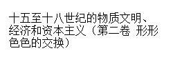 十五至十八世纪的物质文明、经济和资本主义(第二卷 形形色色的交换)