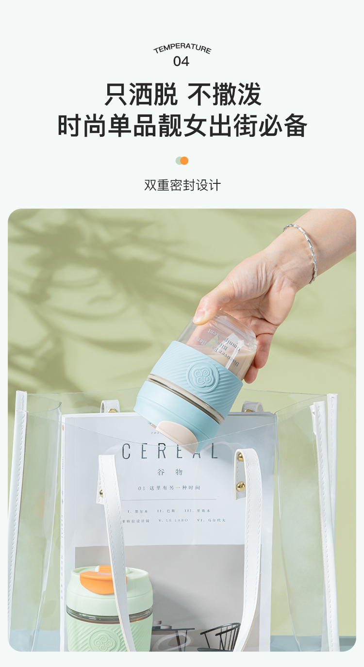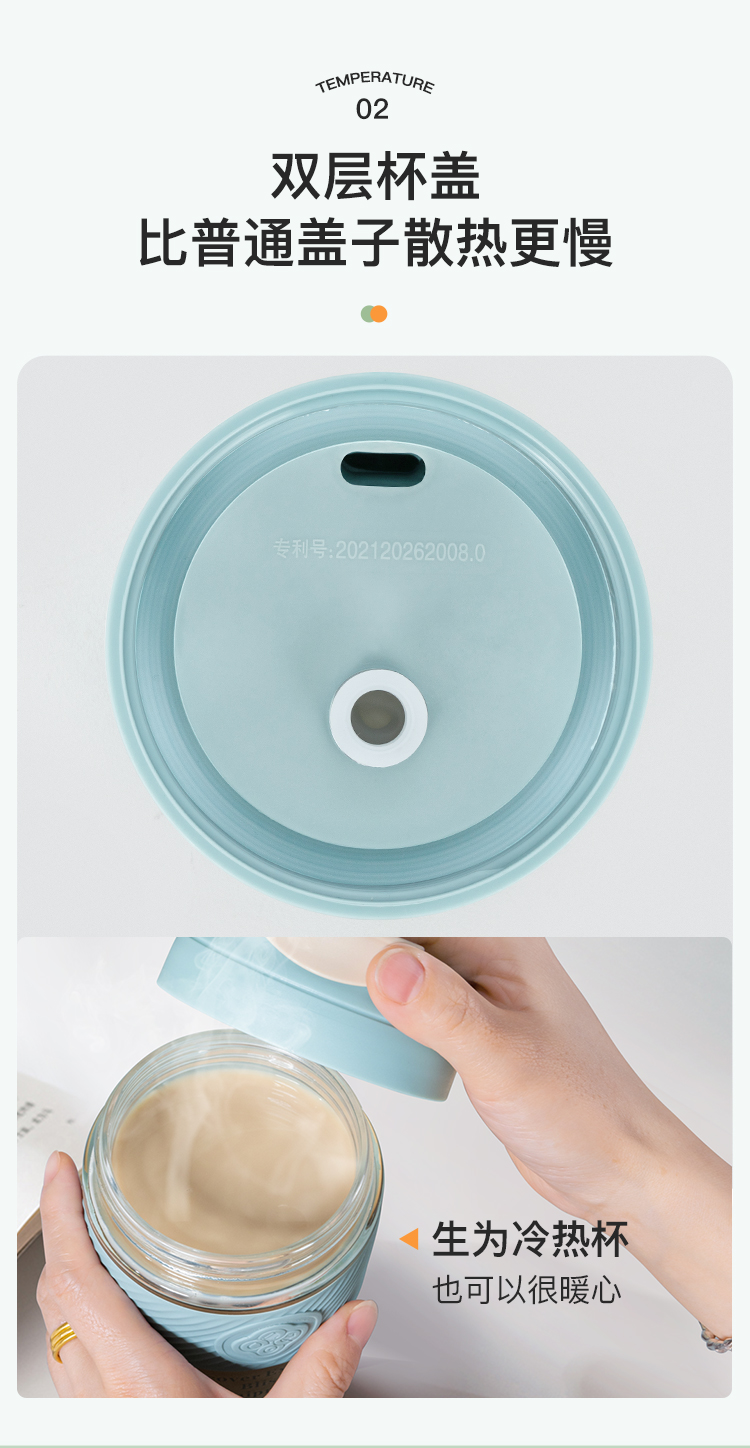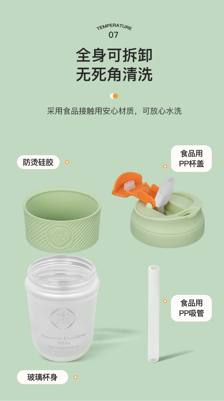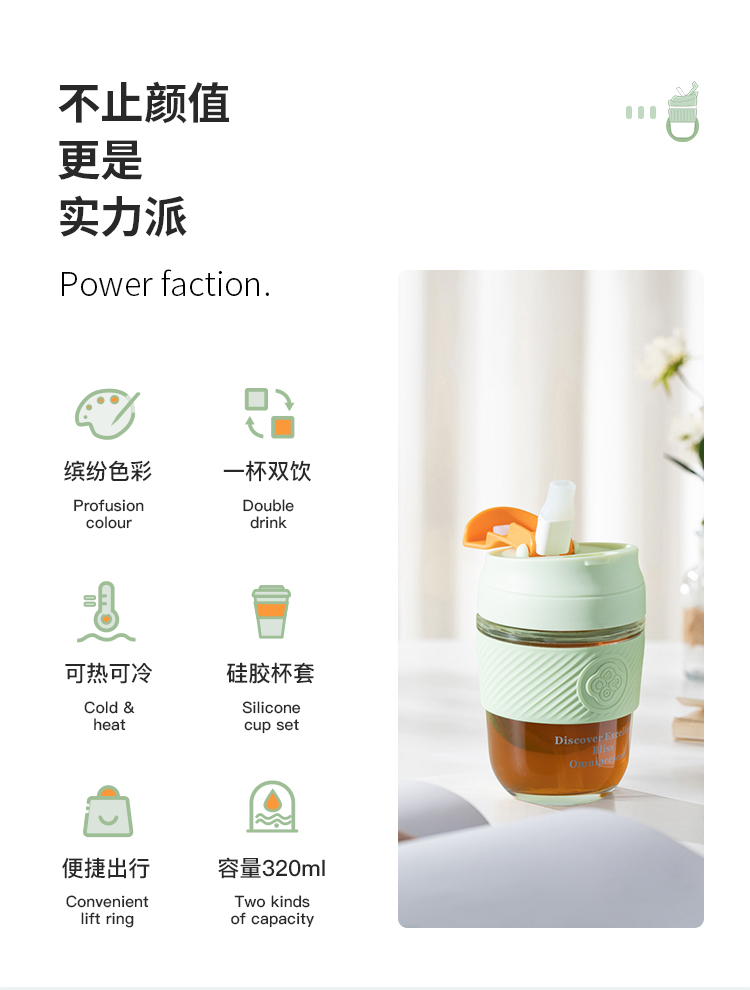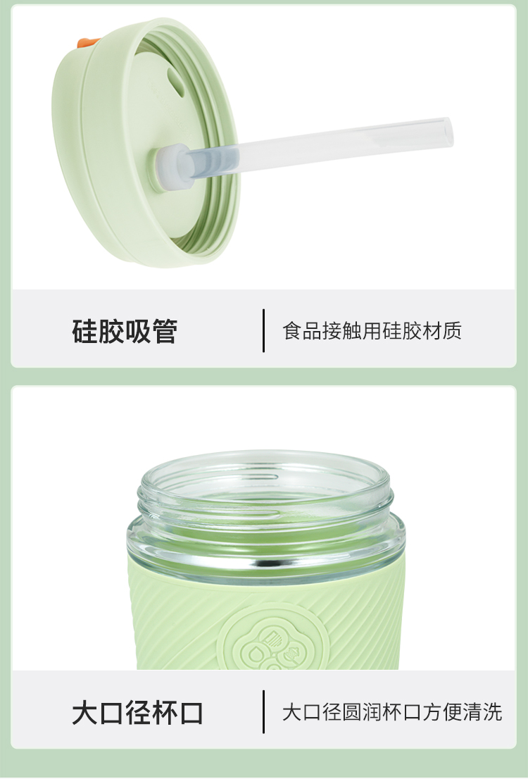 Debo德铂艾朵拉玻璃杯便携小清新有盖吸管杯套创意办公圆形大容量咖啡杯320毫升