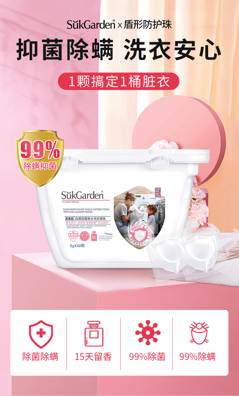 【日化洗护】蔬果园白盾除菌香水洗衣凝珠8g*40颗QSH