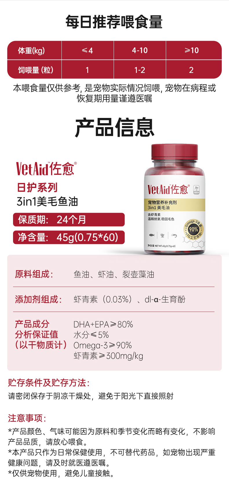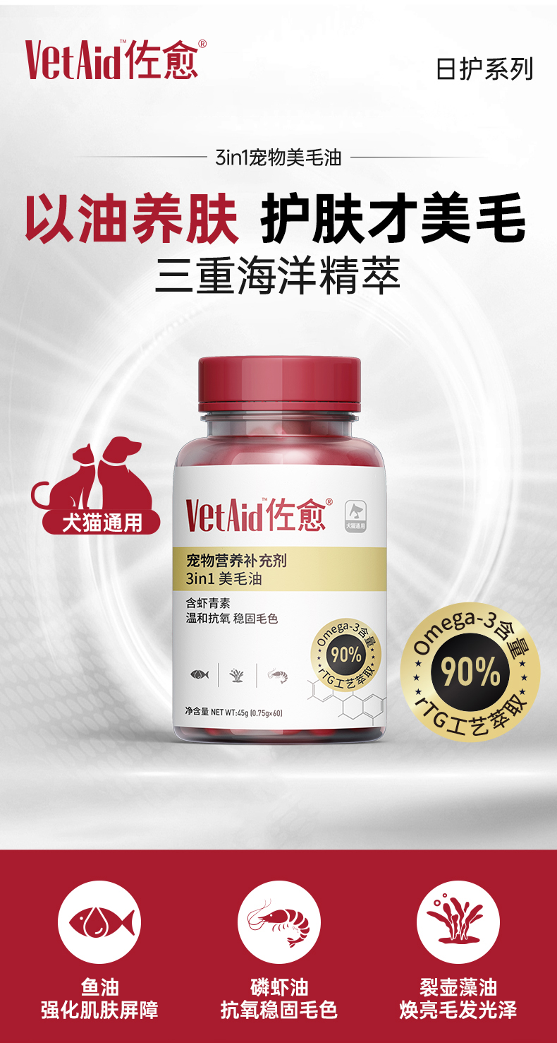 佐愈日护系列宠物营养补充剂3in1美毛油犬猫通用