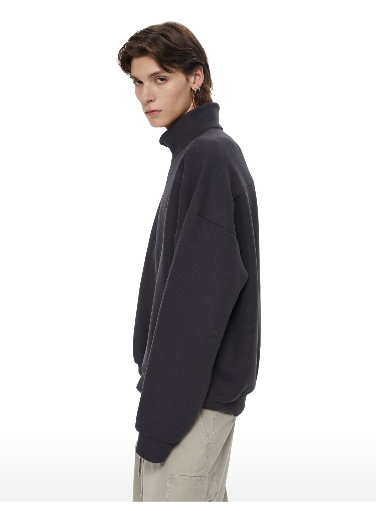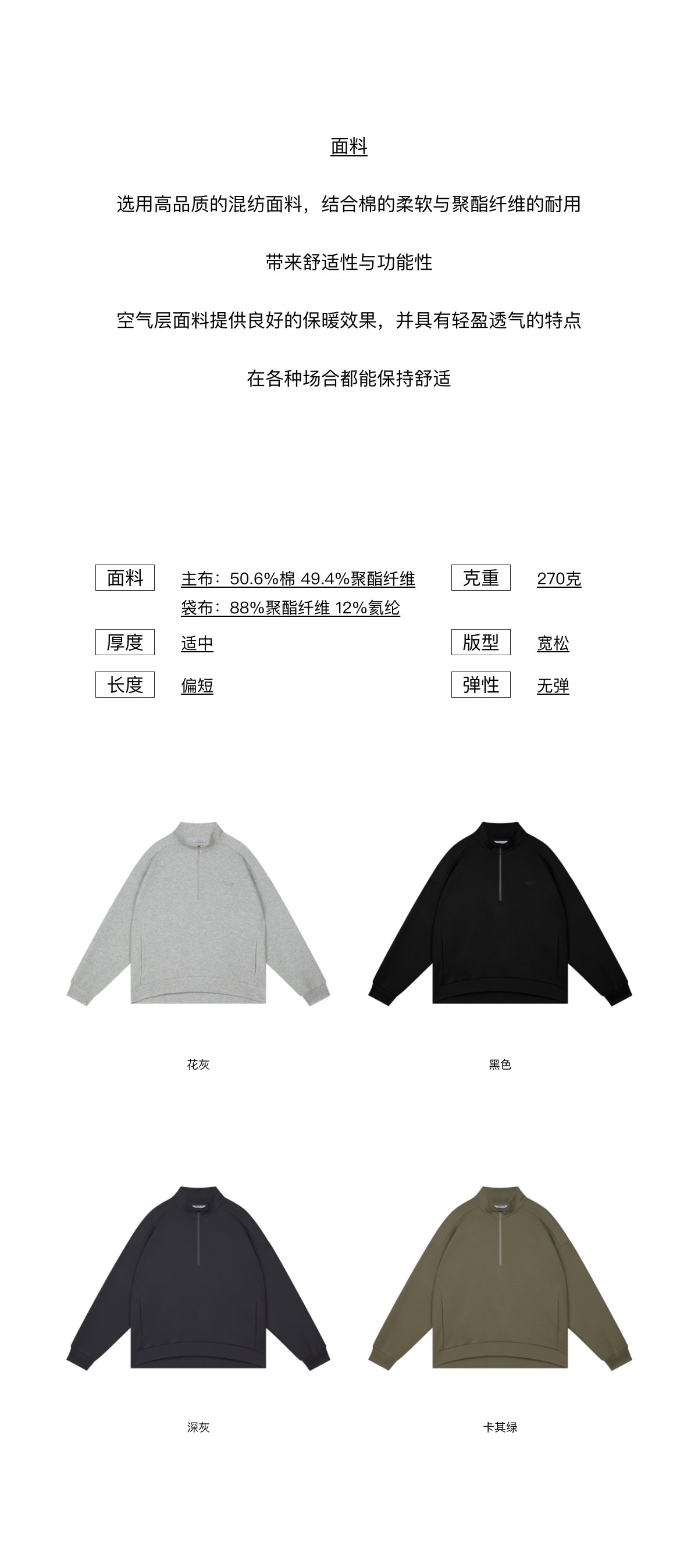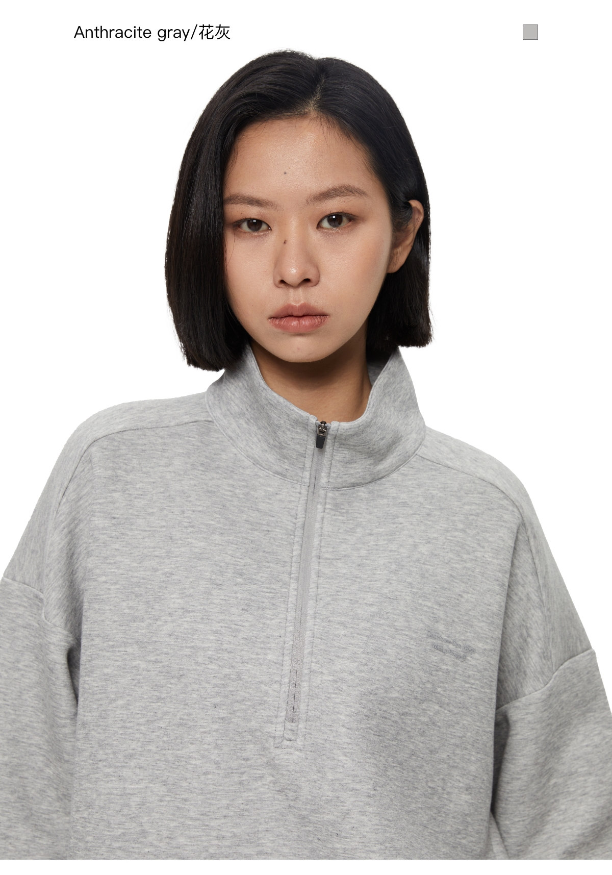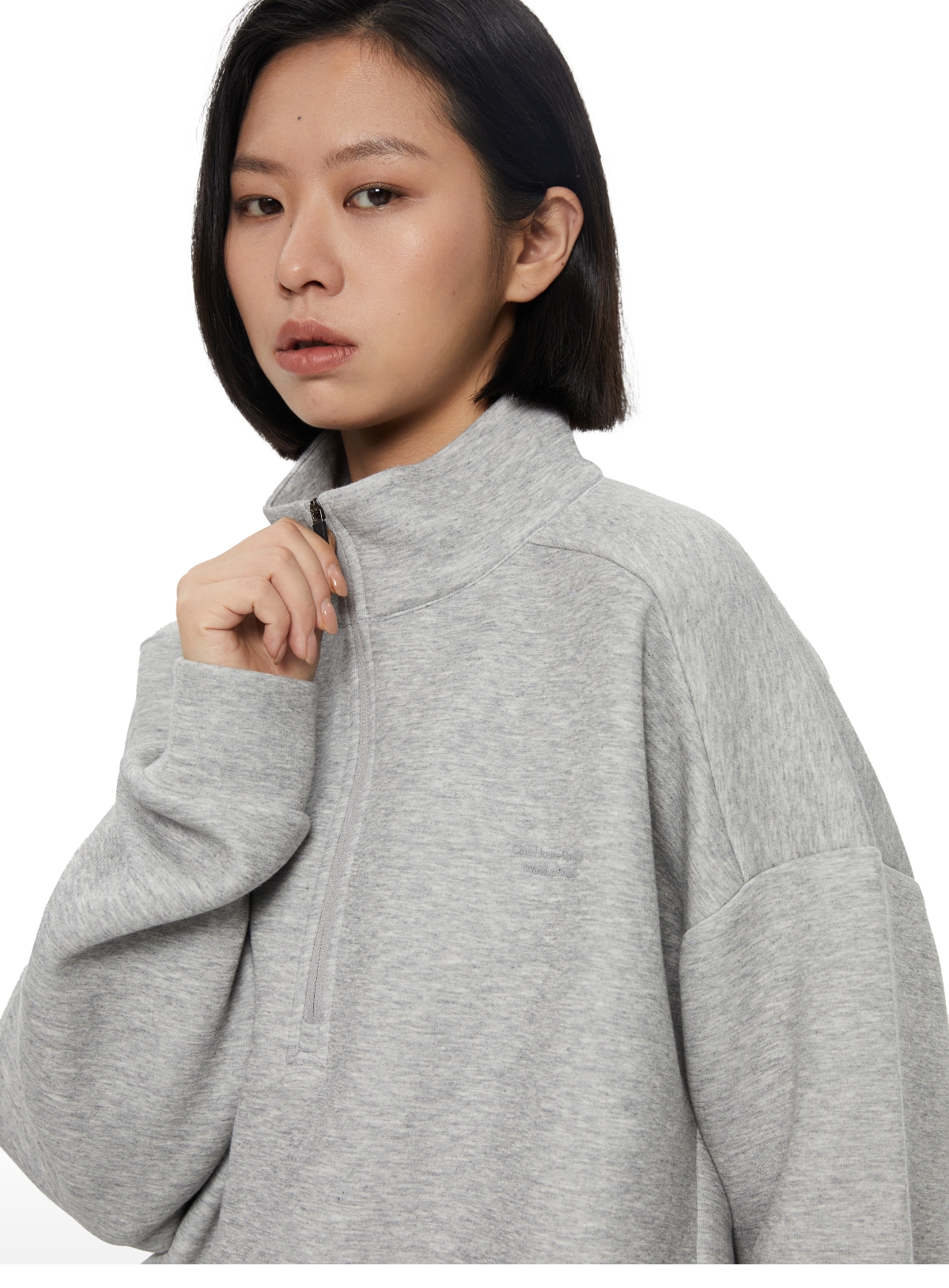 oneup立领抓绒短款拉链卫衣