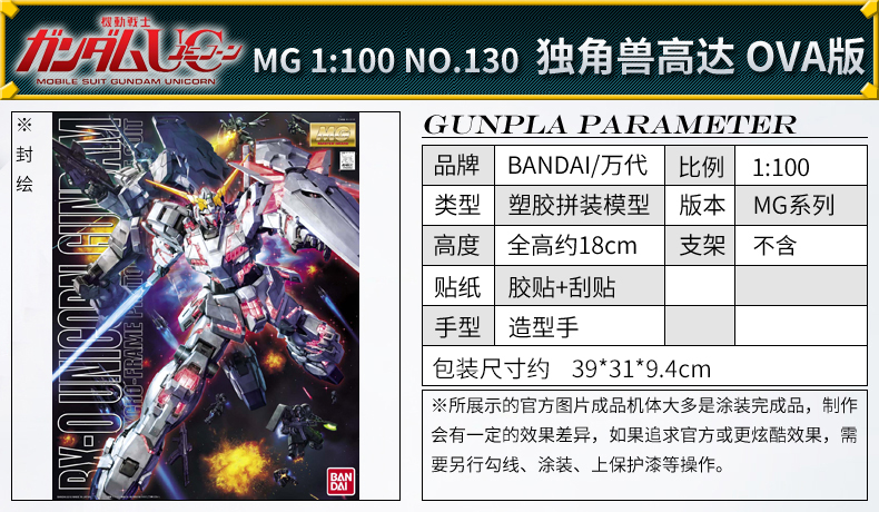 万代模型MG 独角兽高达 (非卡版)-5600