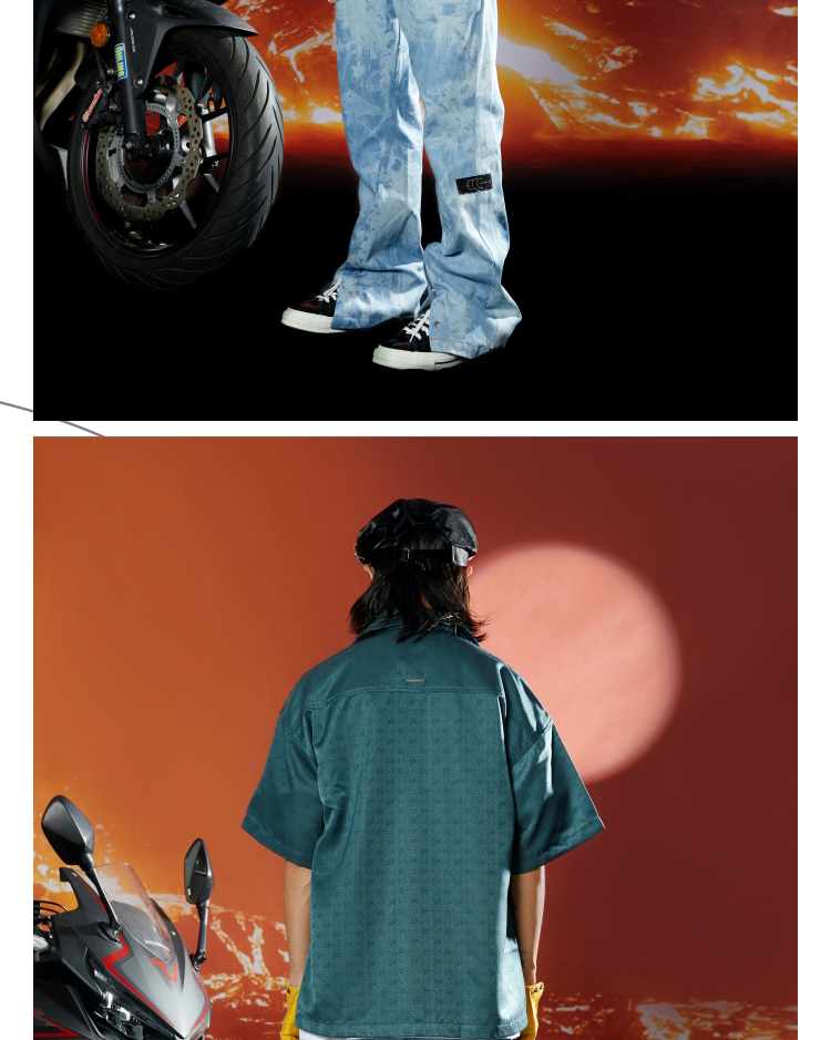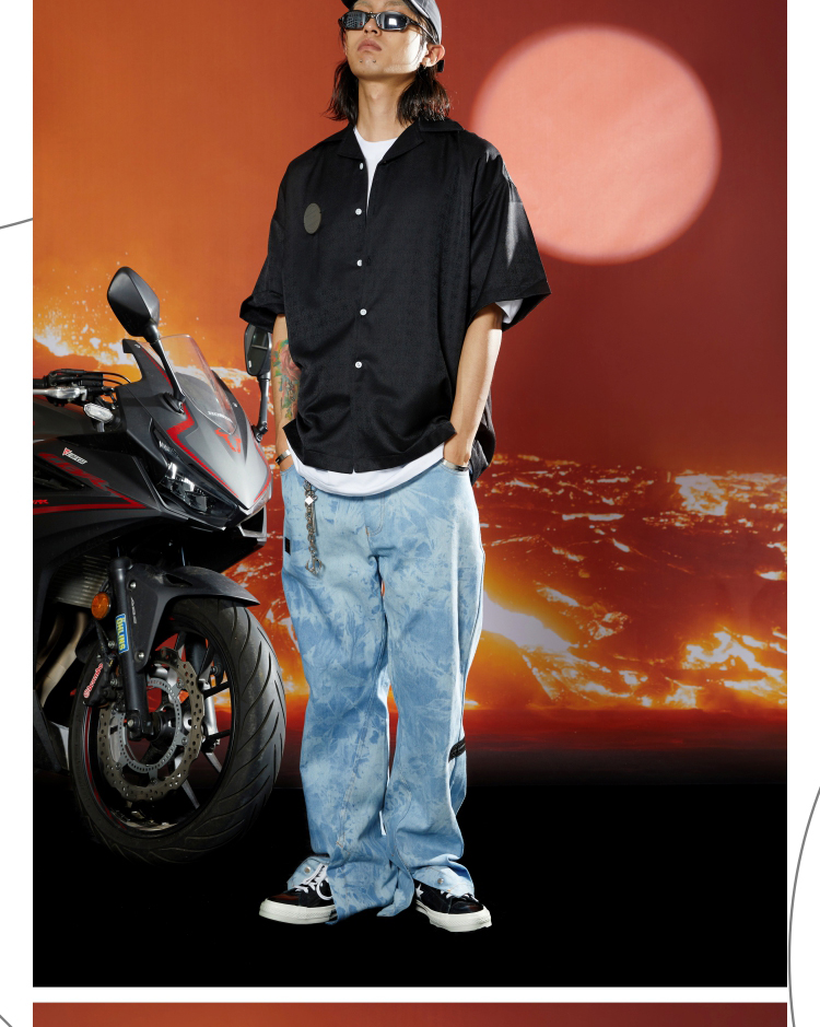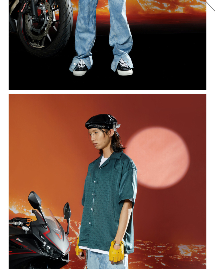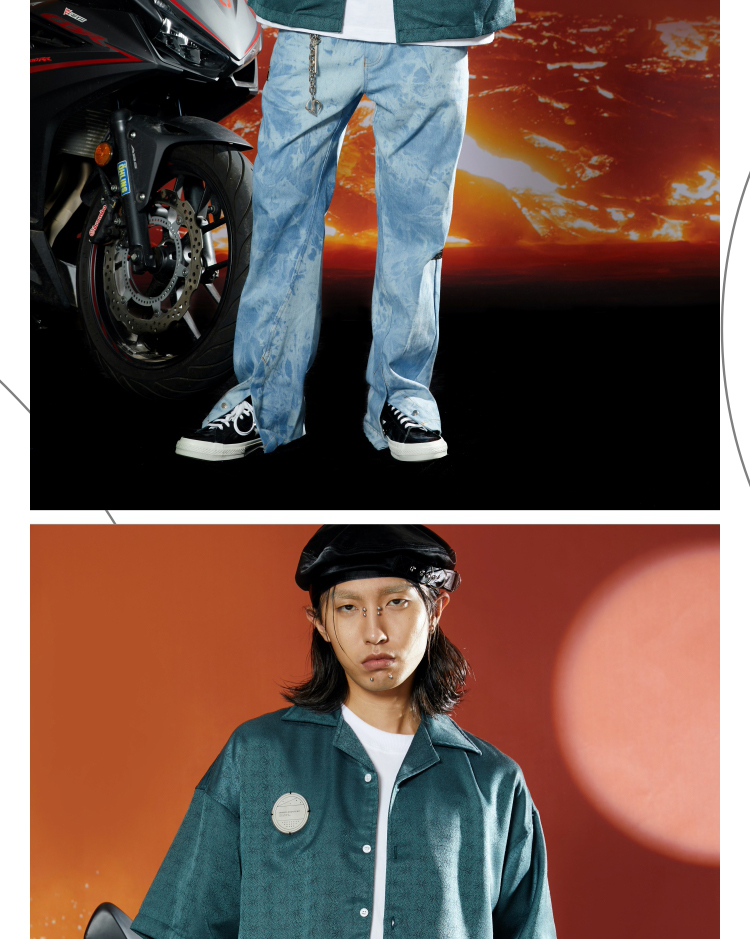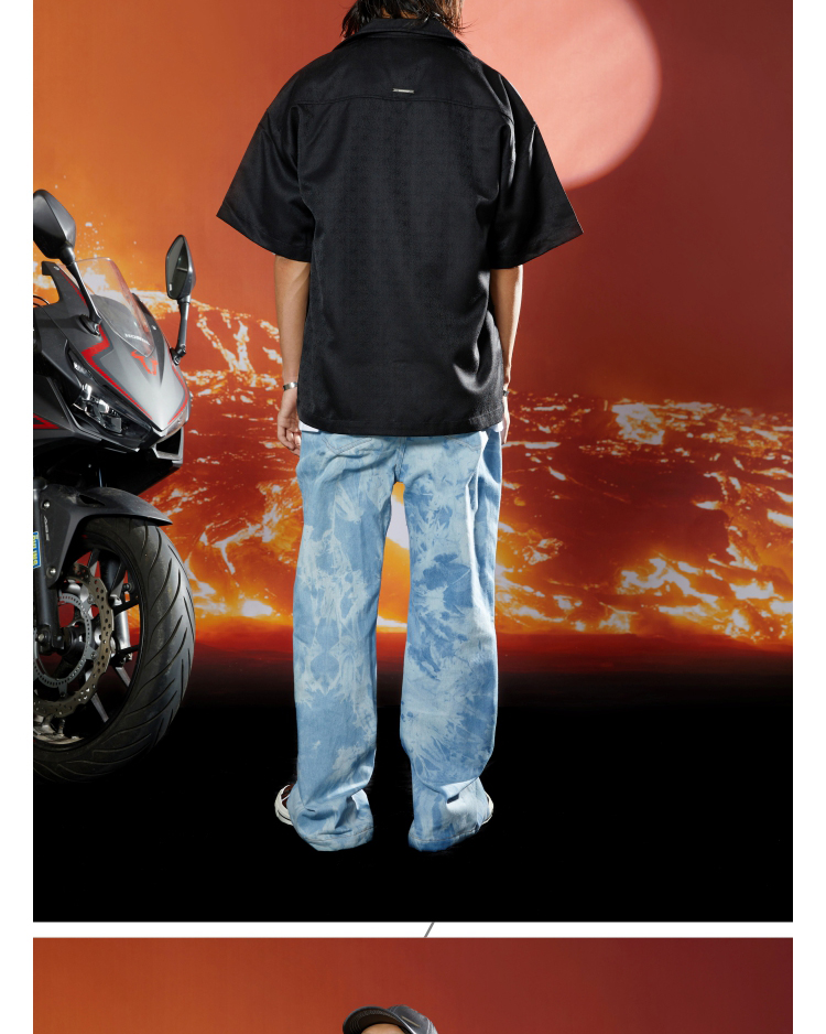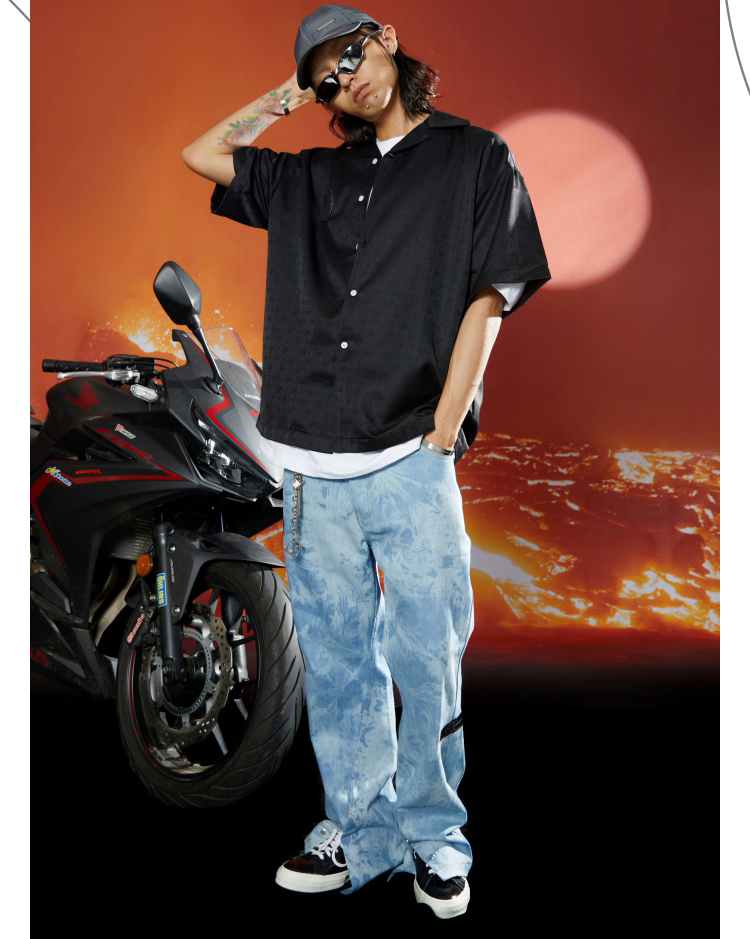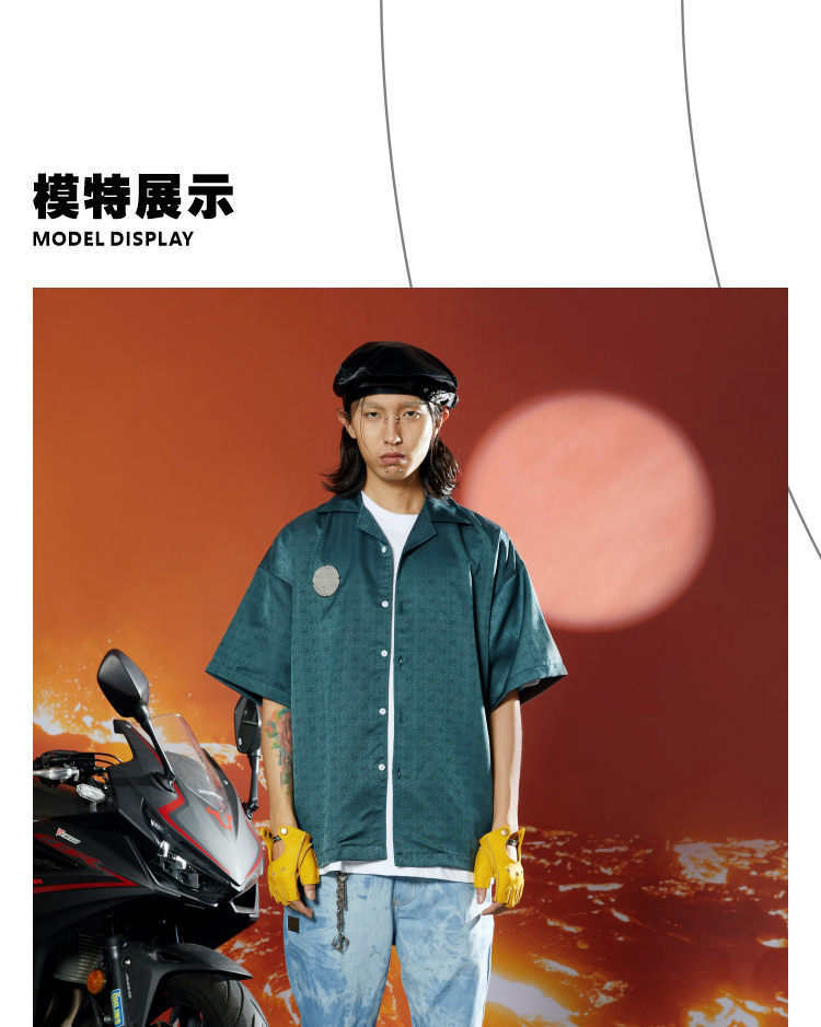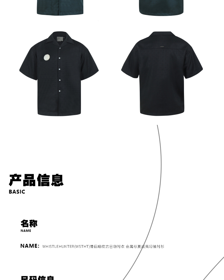 WHISTLEHUNTER(WSTHT)情侣暗纹古巴领衬衣 金属标夏威夷短袖衬衫