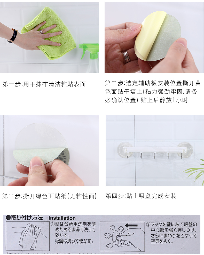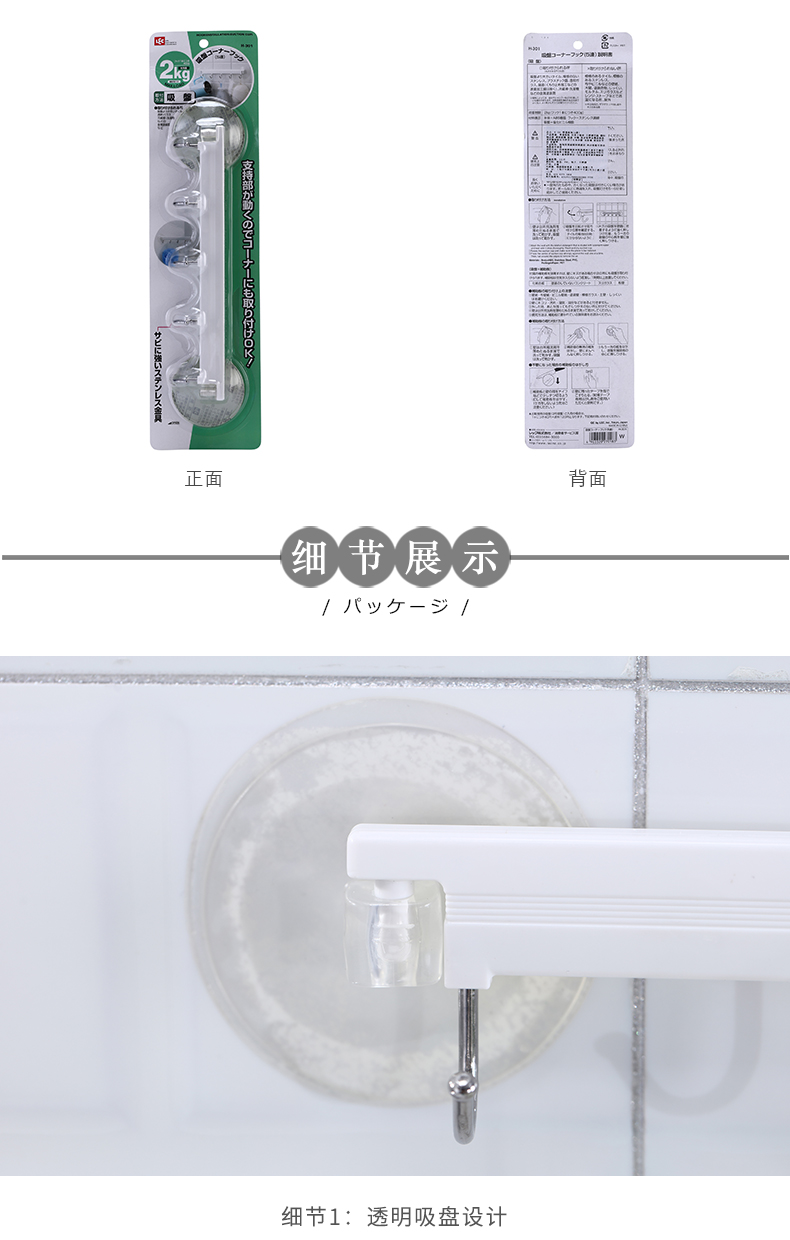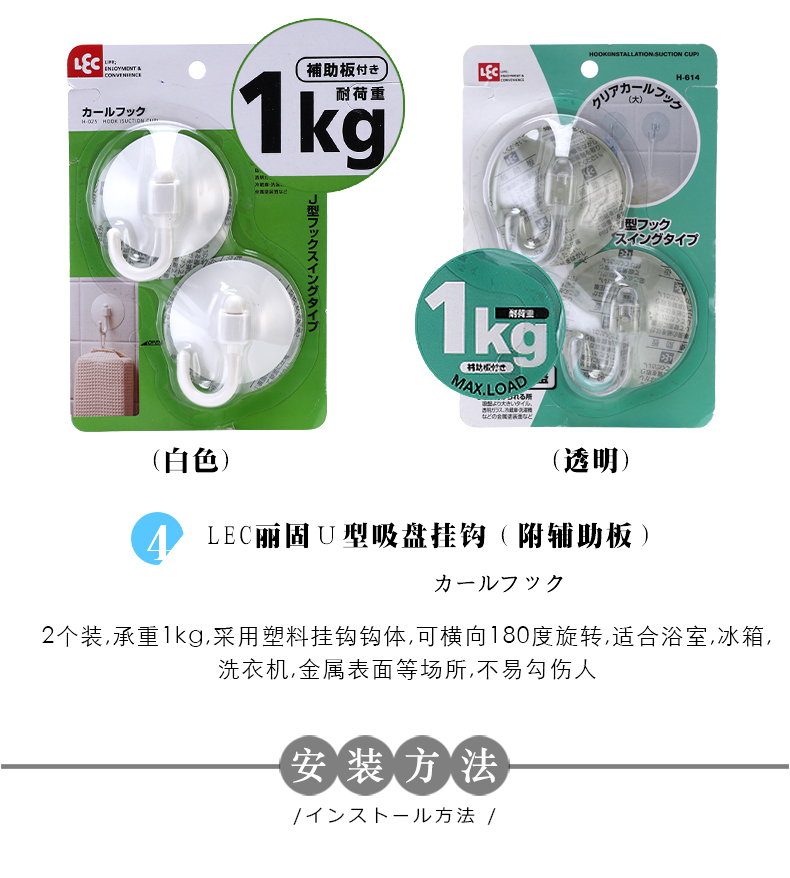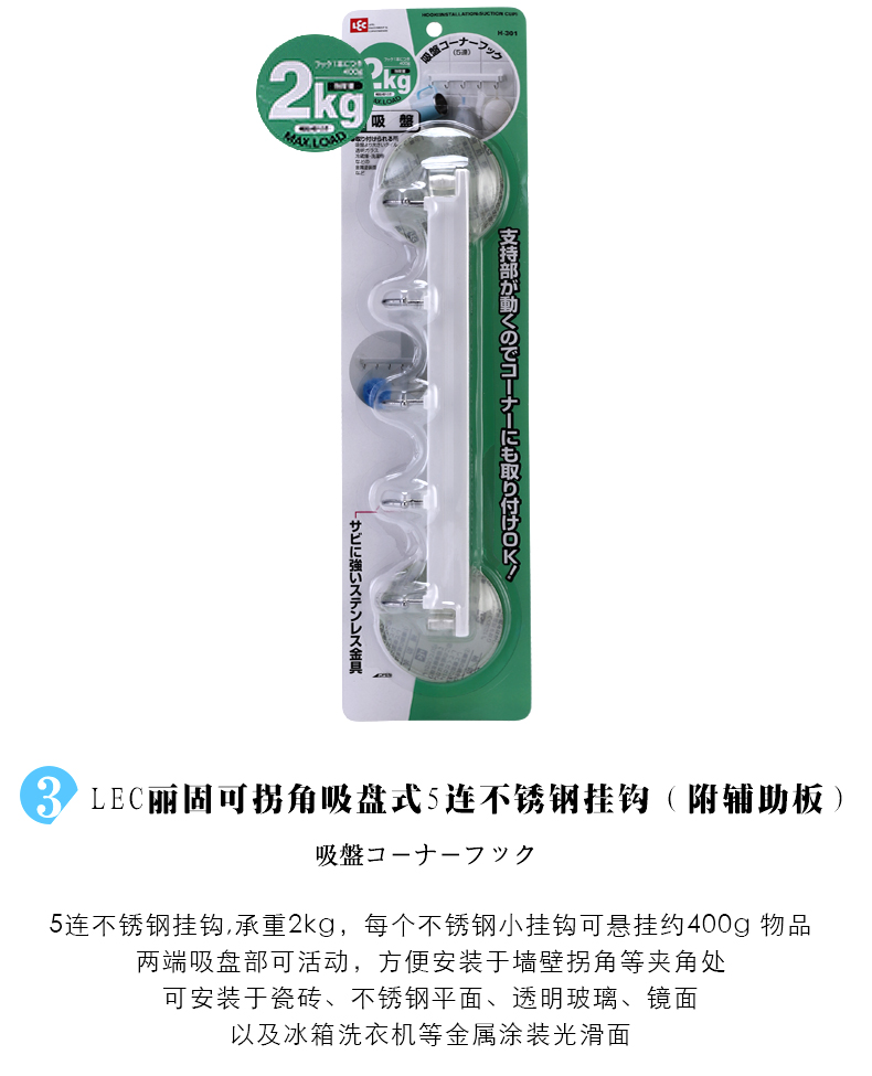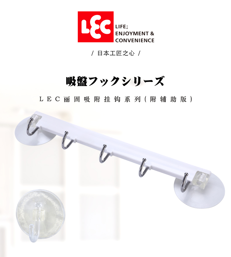日本LEC吸盘式连排挂钩厨房卫生间多功能壁挂粘钩强力承重钩