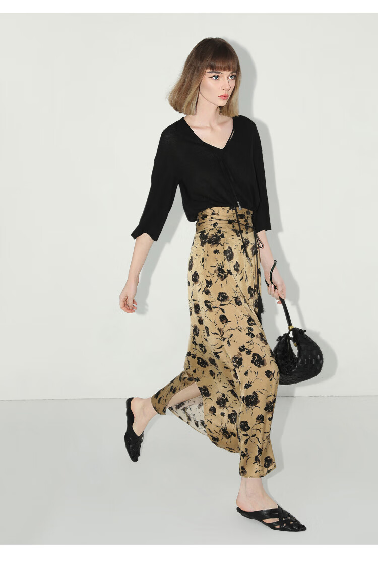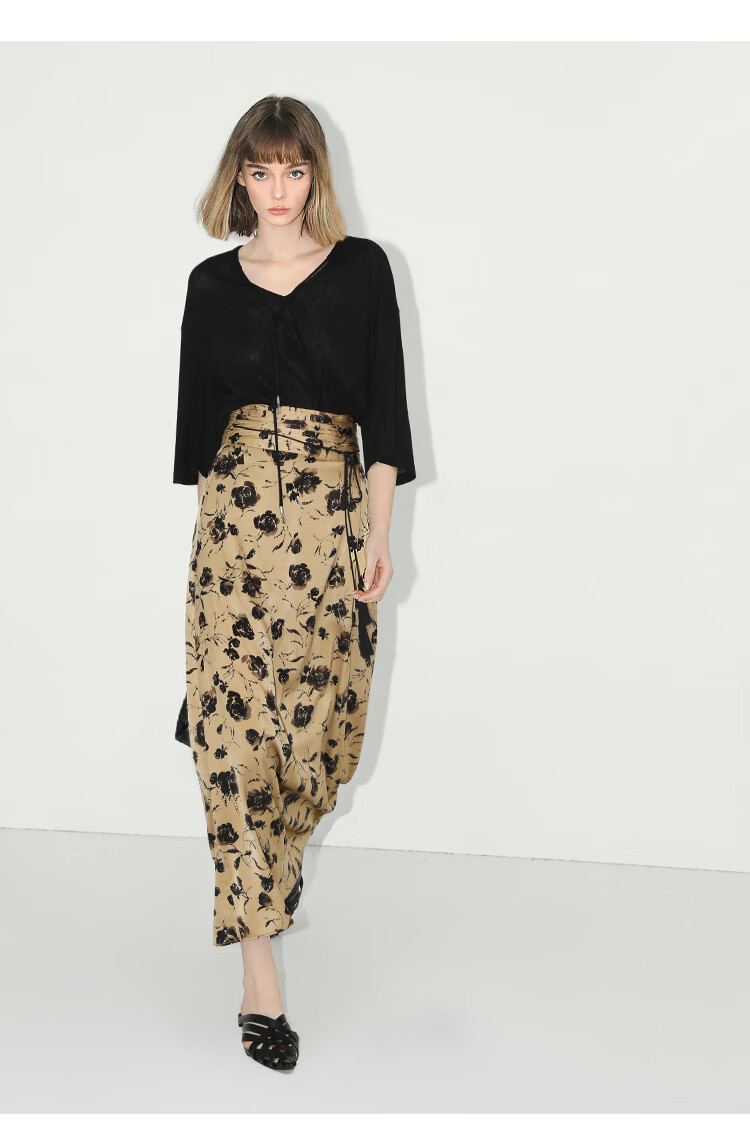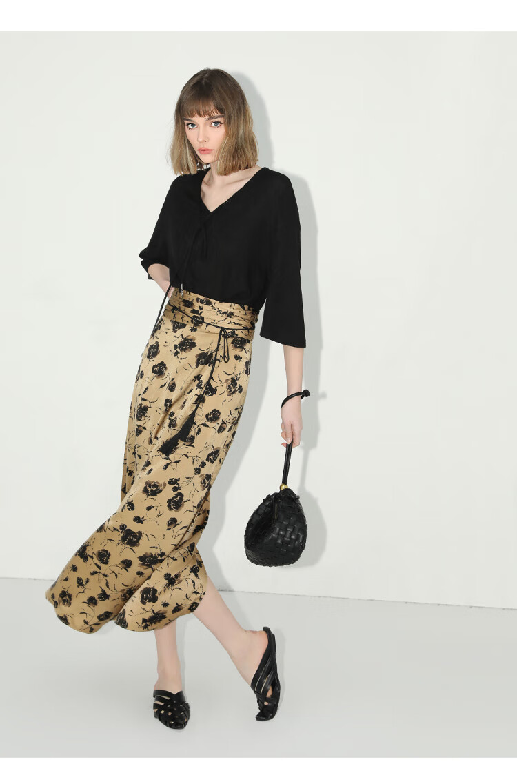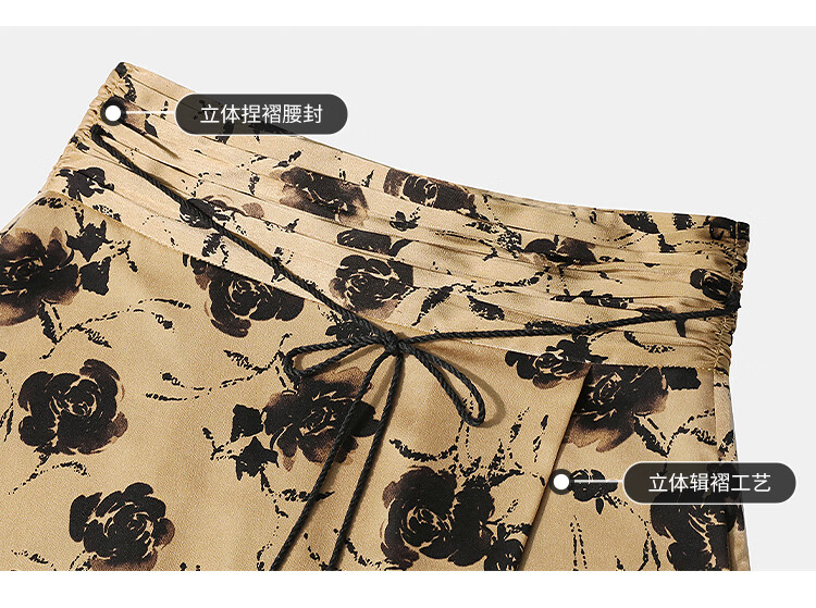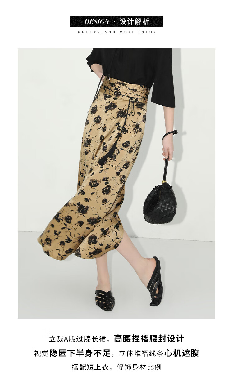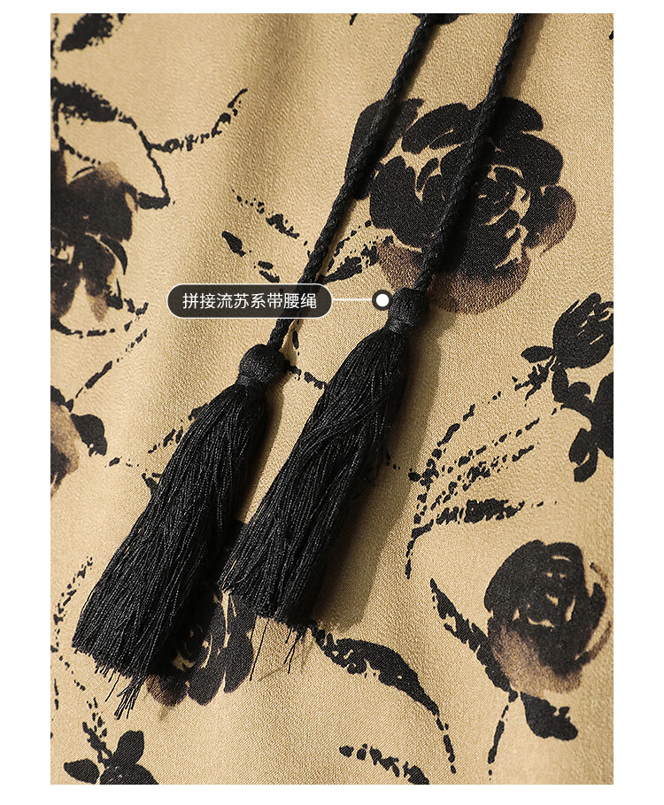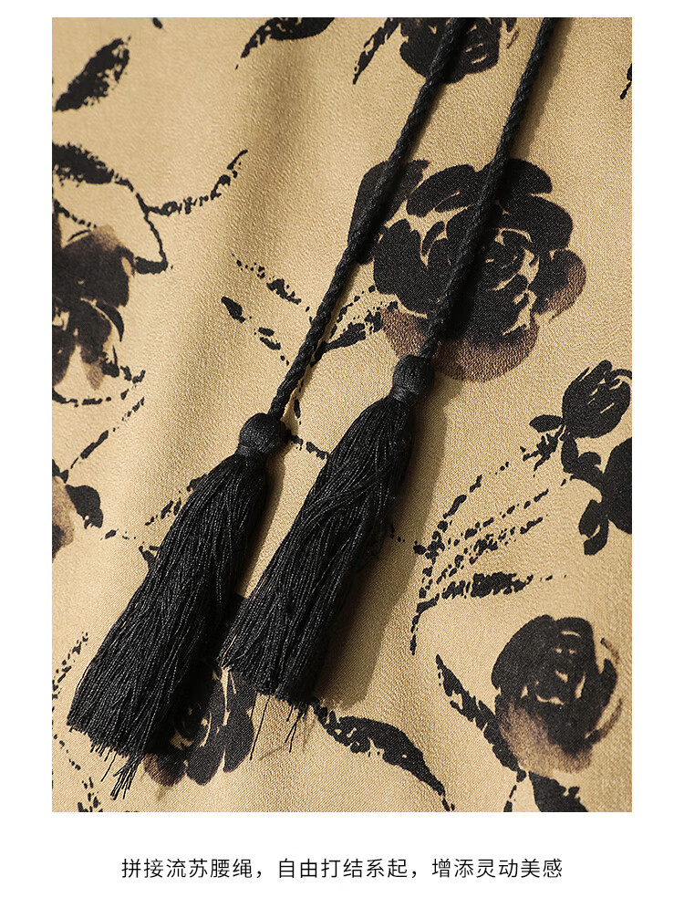 【有赞】COCOBELLA国风流苏飘带高腰捏褶印花半身裙开叉直筒裙HS0019