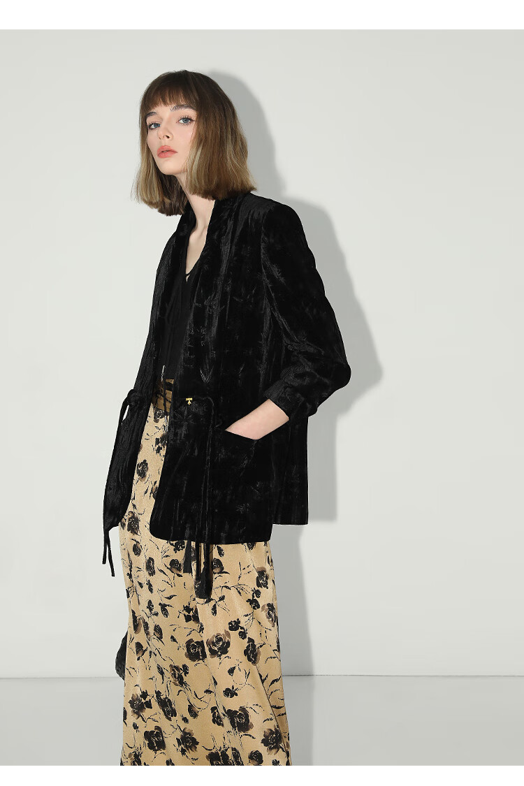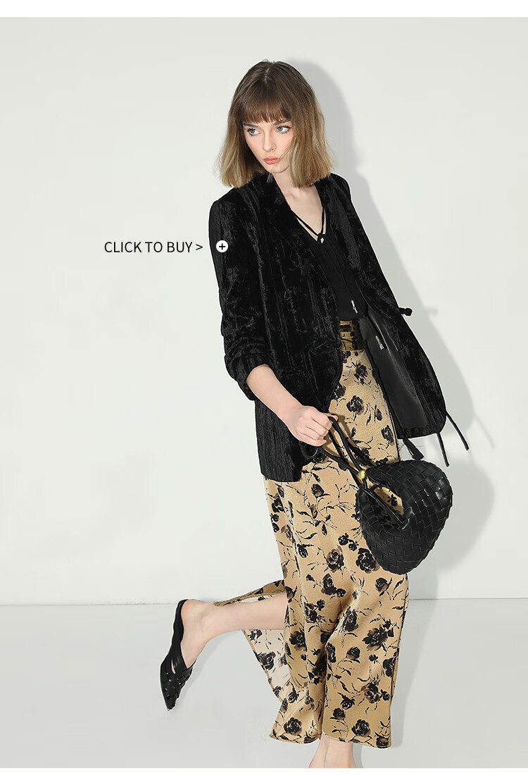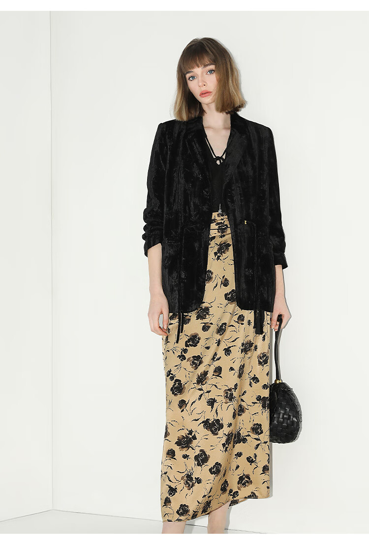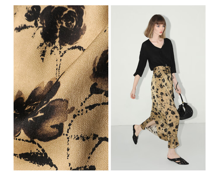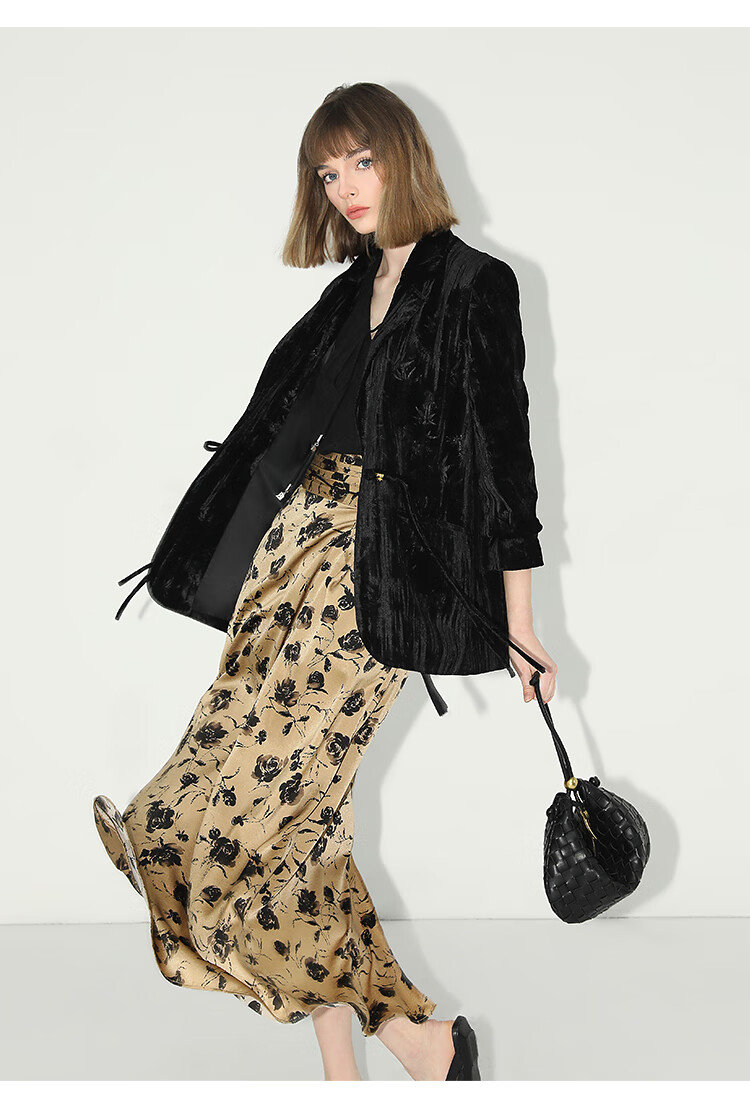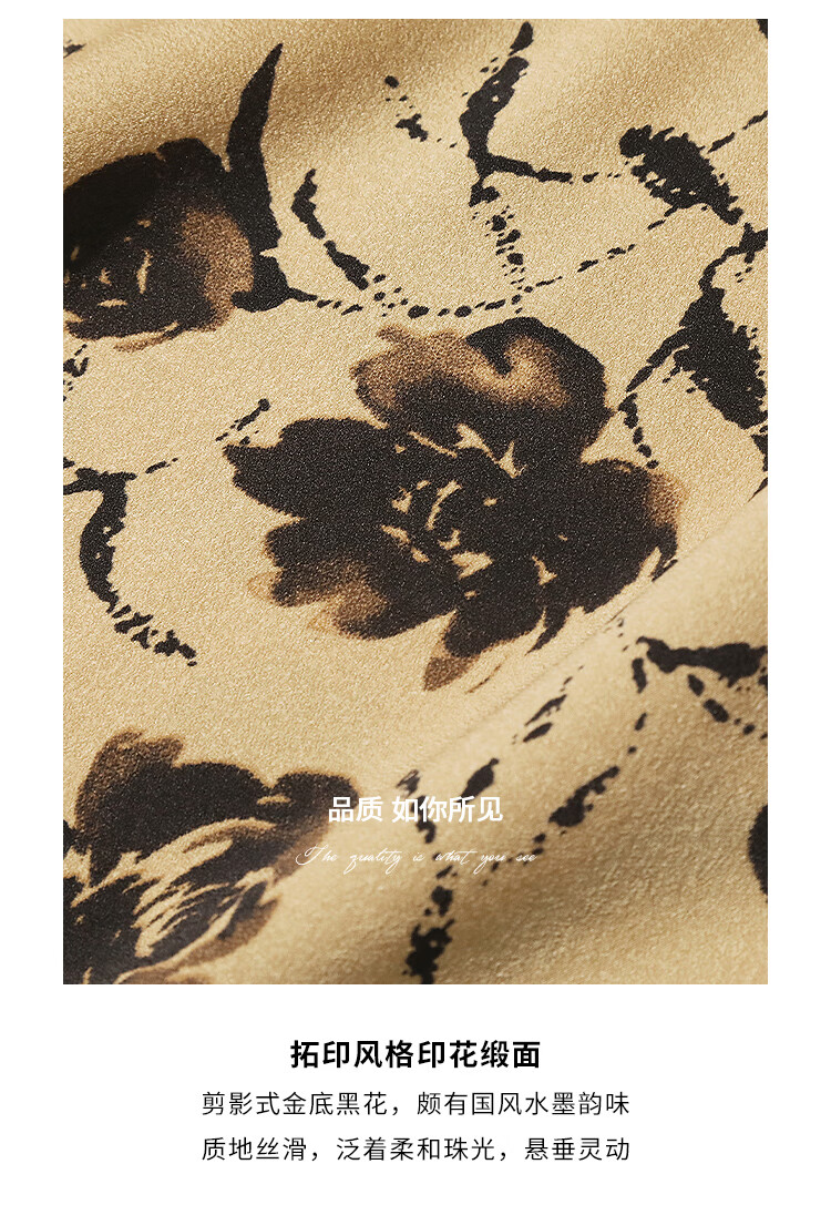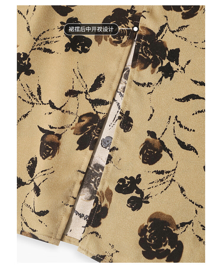 【有赞】COCOBELLA国风流苏飘带高腰捏褶印花半身裙开叉直筒裙HS0019