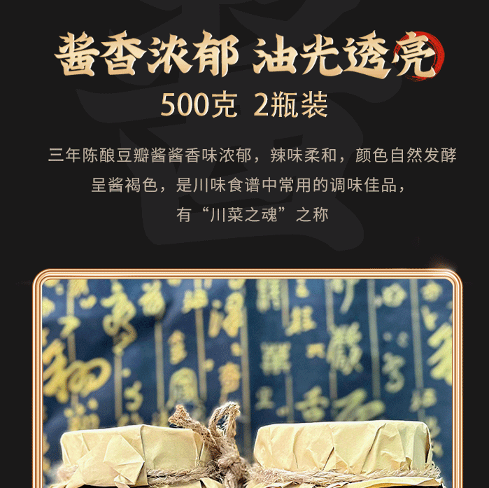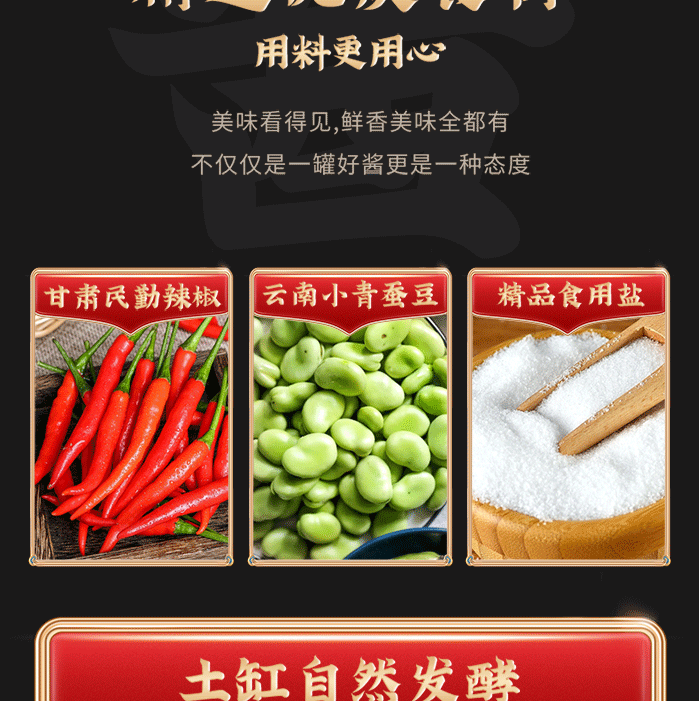 😋风味十足美味的乐山非物质文化遗产土主豆瓣,做菜加上一勺很惊艳, 古法发酵 川味烹饪必备 四重发酵老缸酿 酱香醇厚辣而不燥!每一缸豆瓣酱都是传承了四代人的“土方法”制作,配料表干净!
