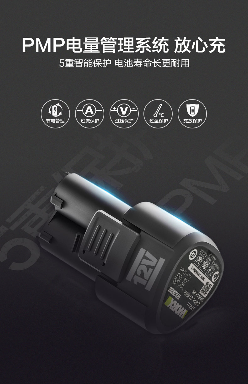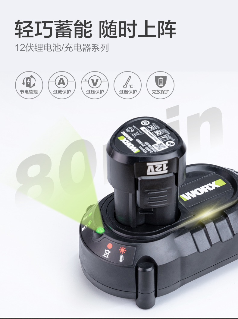 威克士12V锂电电池包充电器通用12V锂电平台多机共享WA3506
