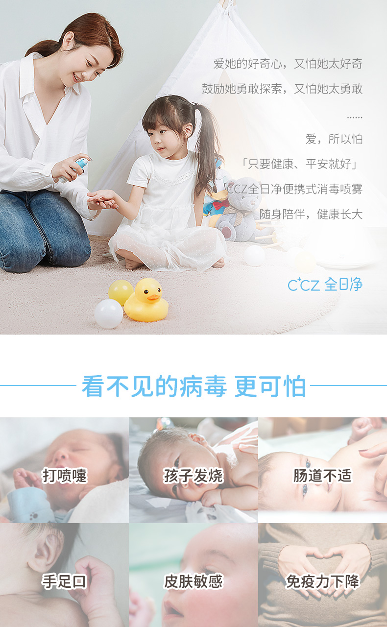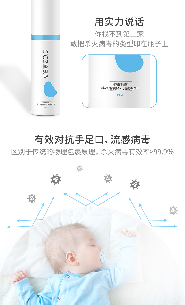 CCZ全日净宝宝免洗洗手液杀菌消毒便携式学生喷雾家用100ml随身