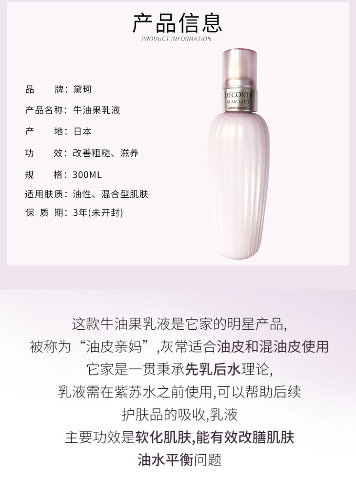 日本直邮 Decorte黛珂 牛油果天然植物乳液300ML 补水保湿限量装