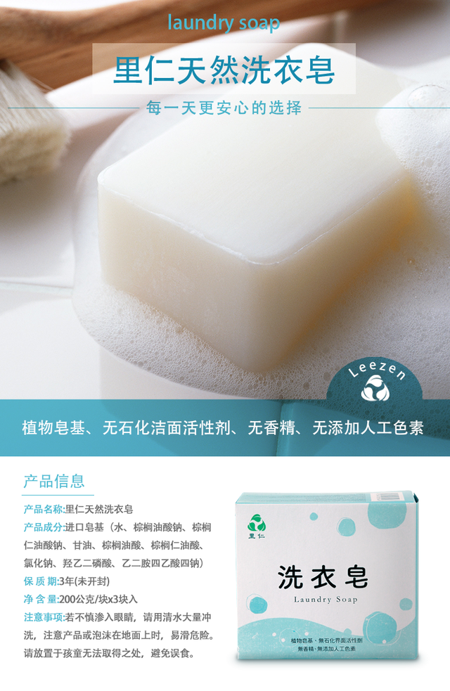特惠【里仁】洗衣皂200g*1块 温和洁净 更安心的选择