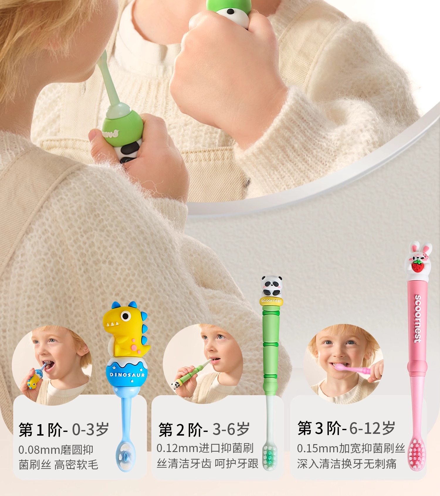 科巢儿童软毛牙刷宝宝0-1-3到6-12岁以上牙膏婴儿婴幼儿乳牙小孩