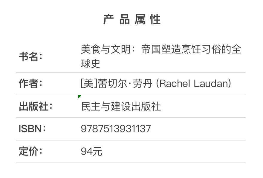美食与文明:帝国塑造烹饪习俗的全球史 汗青堂系列丛书073 作者:[美]蕾切尔·劳丹 (Rachel Laudan) 译 者:杨宁 出版社:民主与建设出版社