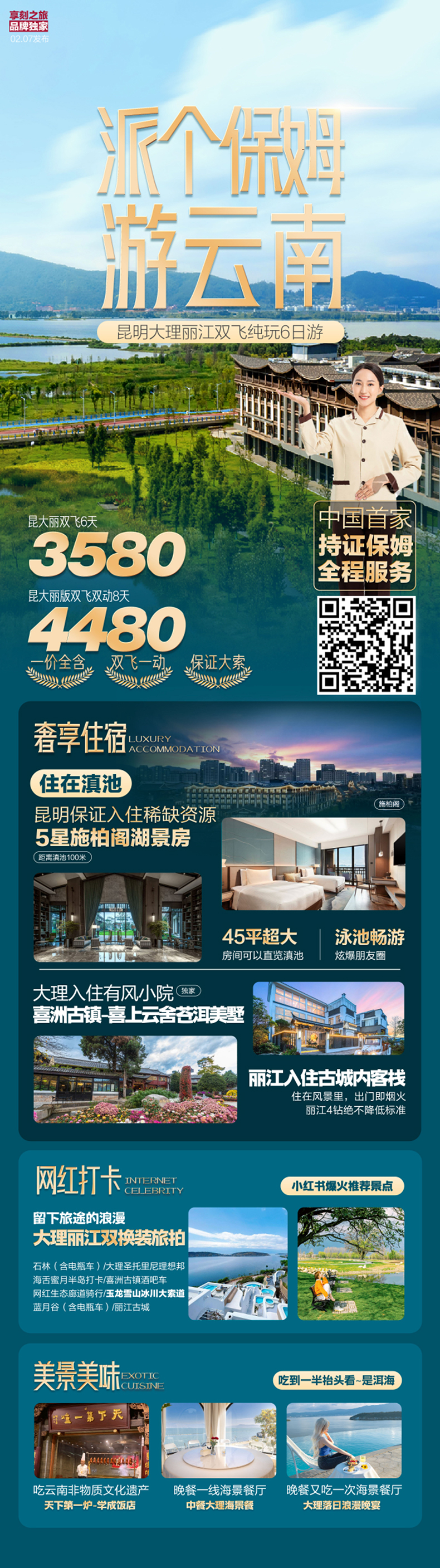 昆明+大理+丽江双飞六日游 中国首家持证保姆跟团服务 一价全含
