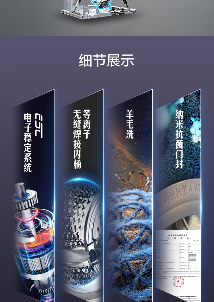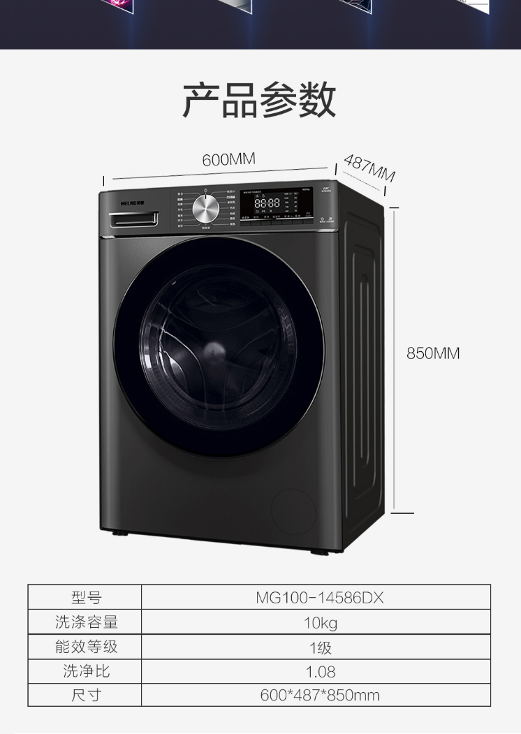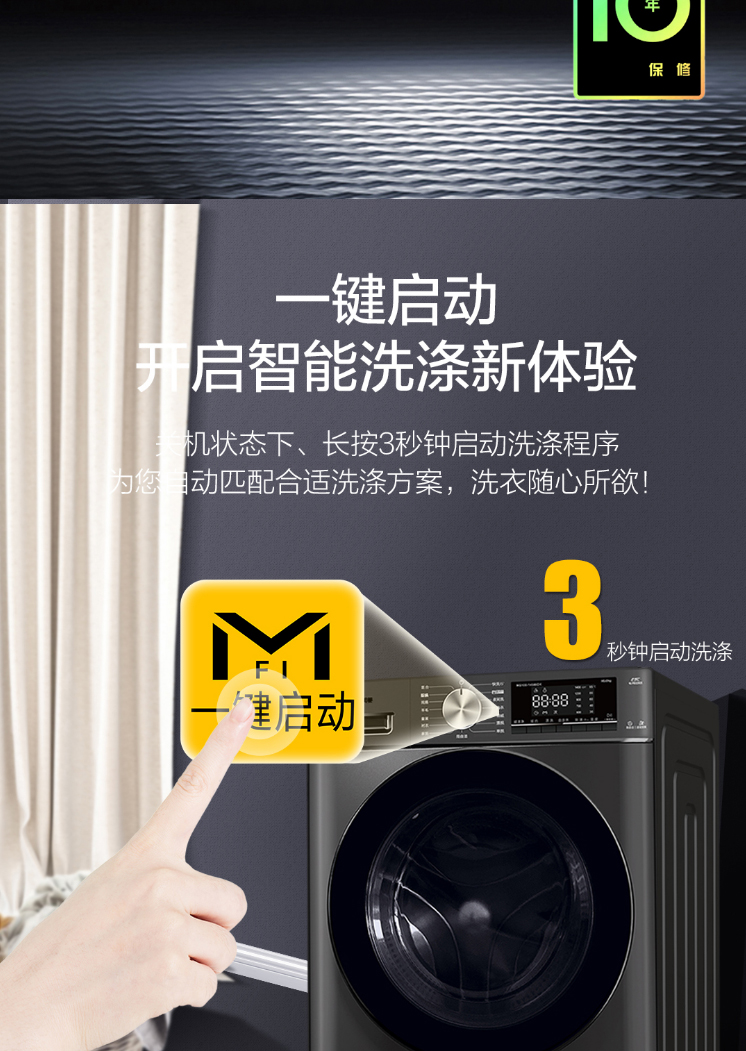 美菱(Meiling)10公斤除螨洗纯棉洗羊毛洗巴氏除菌洗衣机一级能效家用洗衣机 MG100-14586DX