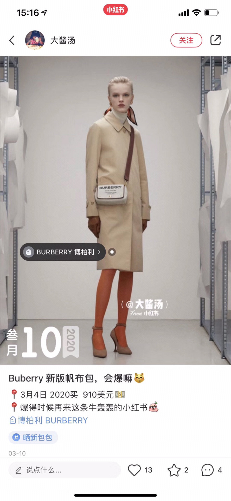 今年新款的Burberry⃝帆布系列简直不要太好看了‼🌟 新包推荐!走秀款帆布相机包📷对B家的帆布拼棕皮系列毫无抵抗力!又一款又美又好用的小可爱噢!第一眼就爱上的帆布包,小包身 容量大 最重要是它非常輕,是這個夏天☀最好的配搭(18X12X8)550