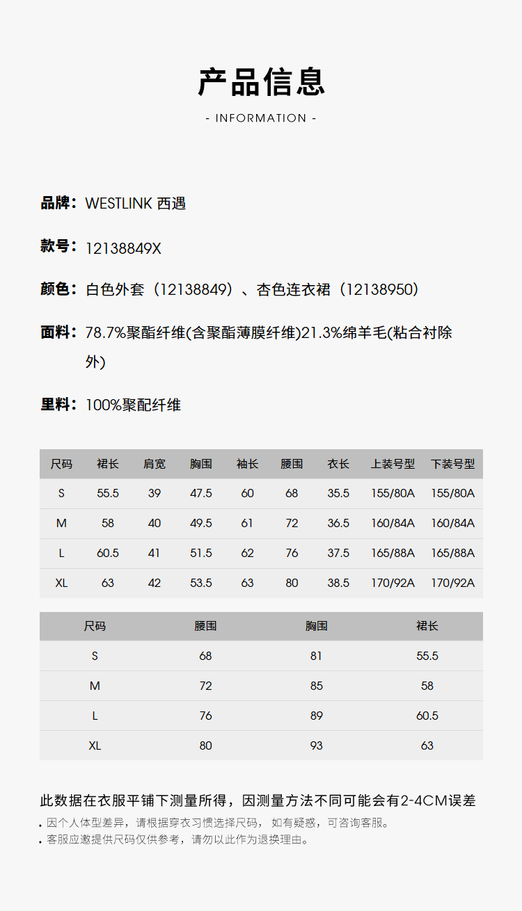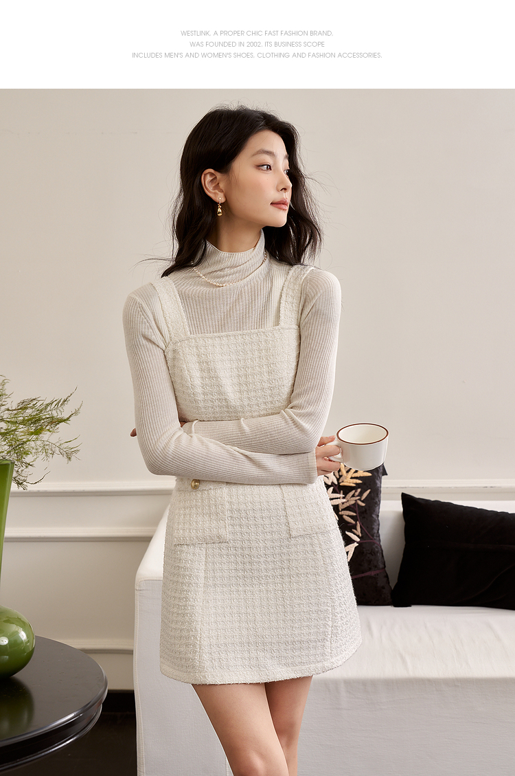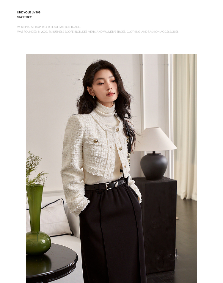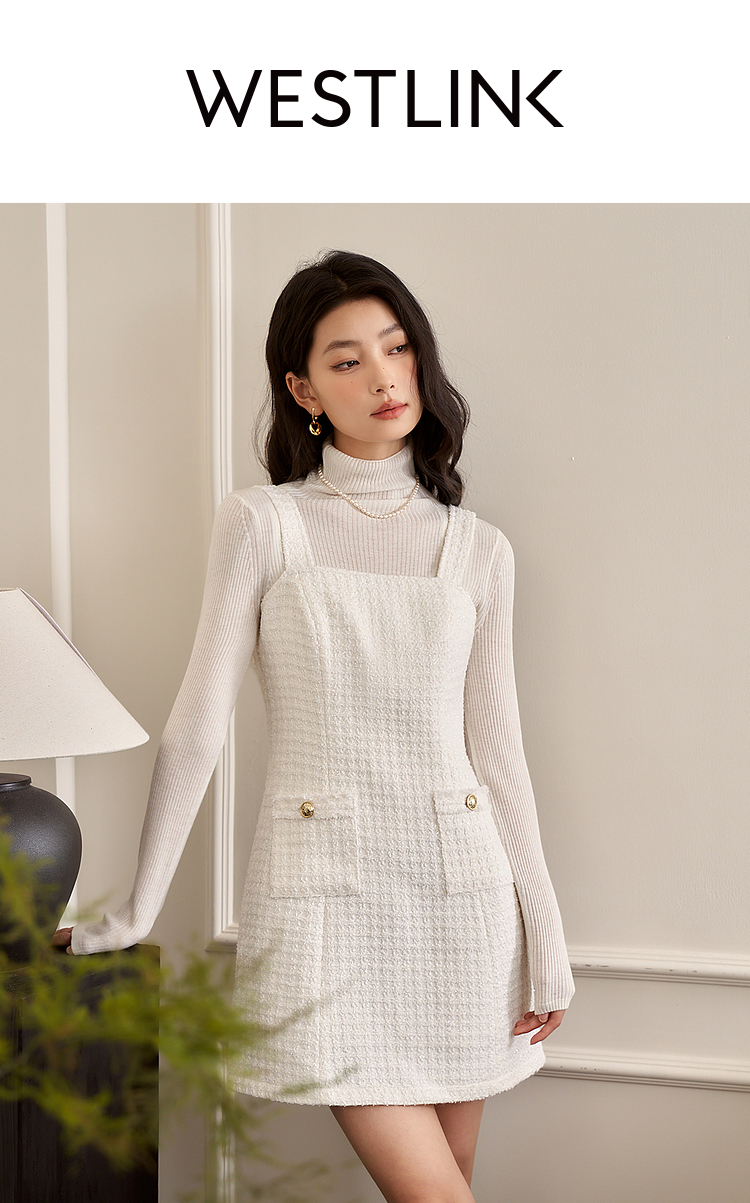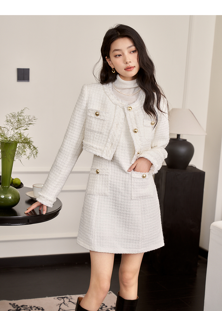 西遇小香风梭织套装裙女秋冬新款米白色短款上衣吊带半身裙12138849/12138950