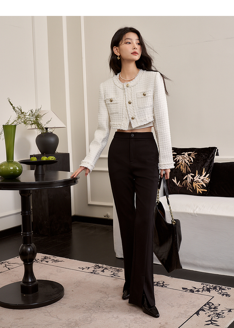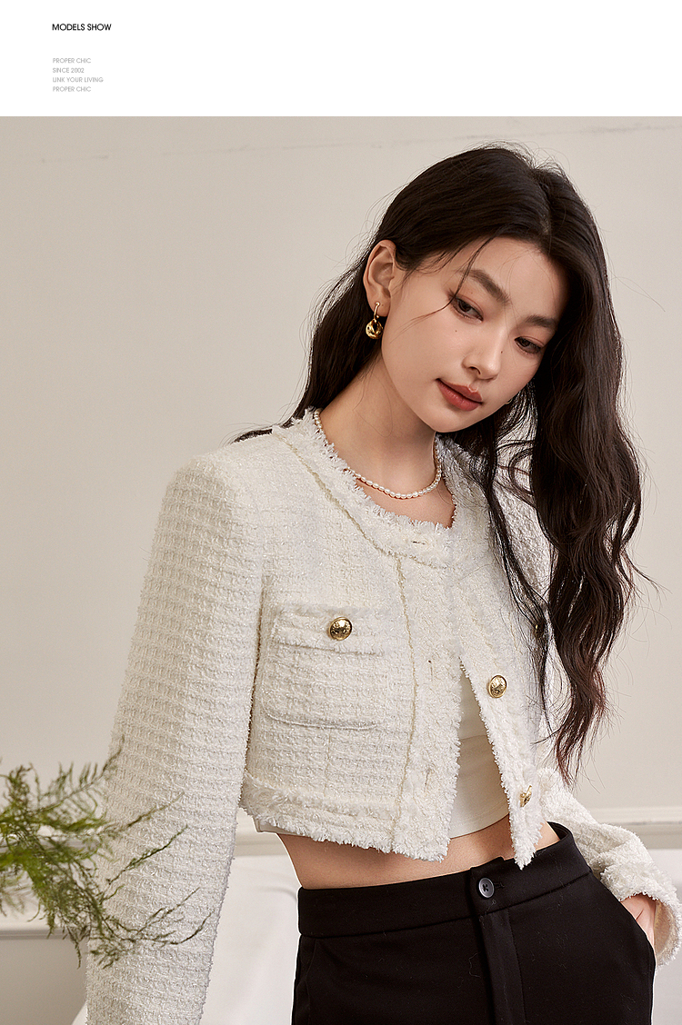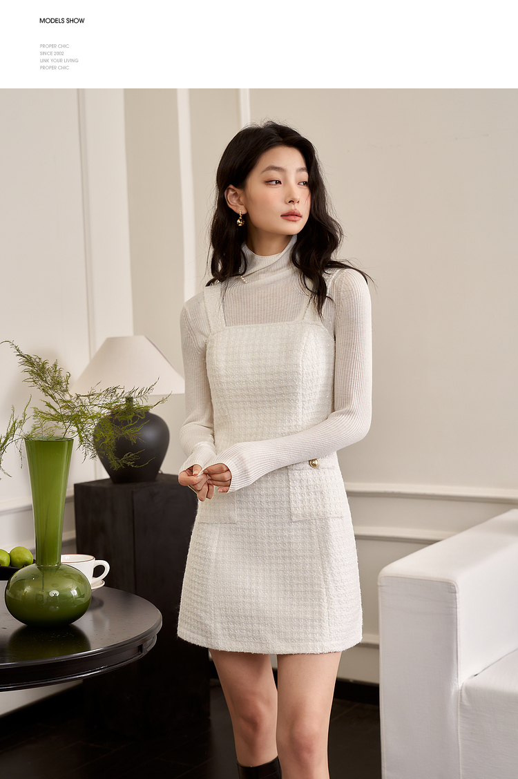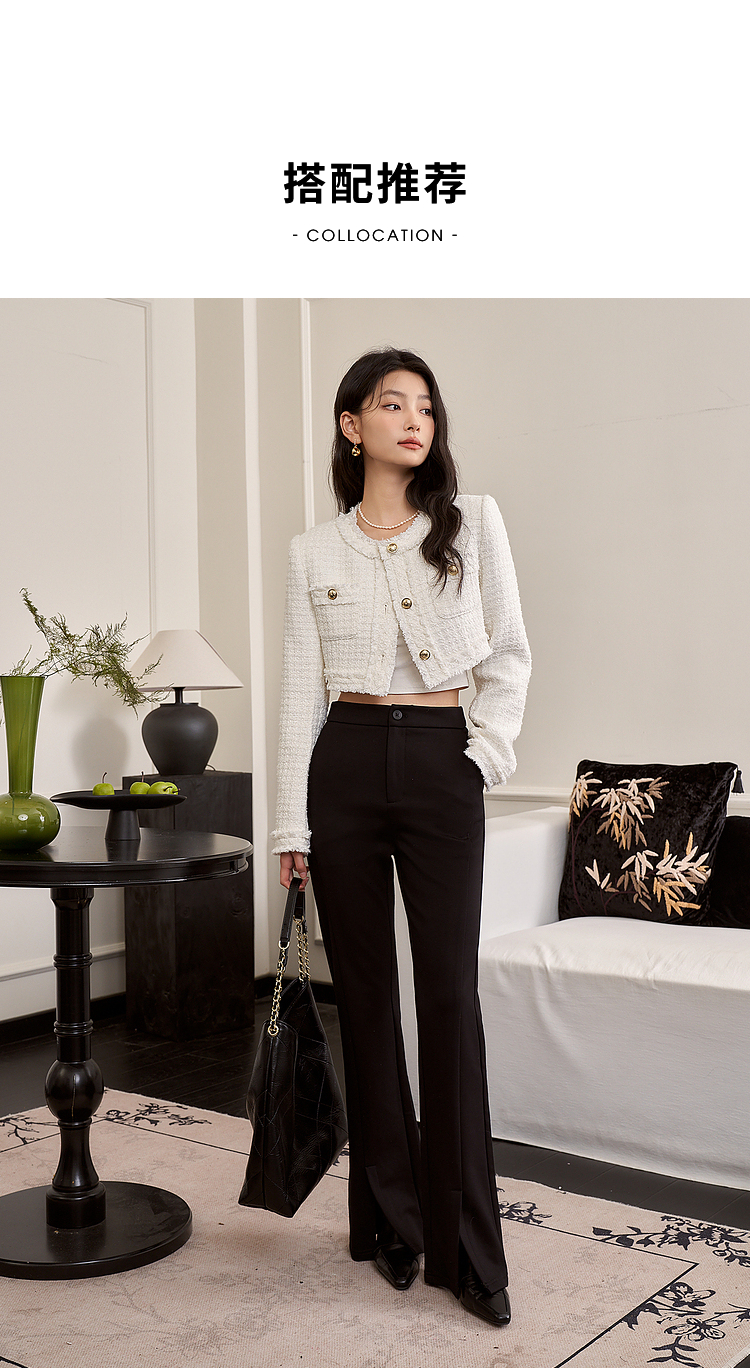 西遇小香风梭织套装裙女秋冬新款米白色短款上衣吊带半身裙12138849/12138950