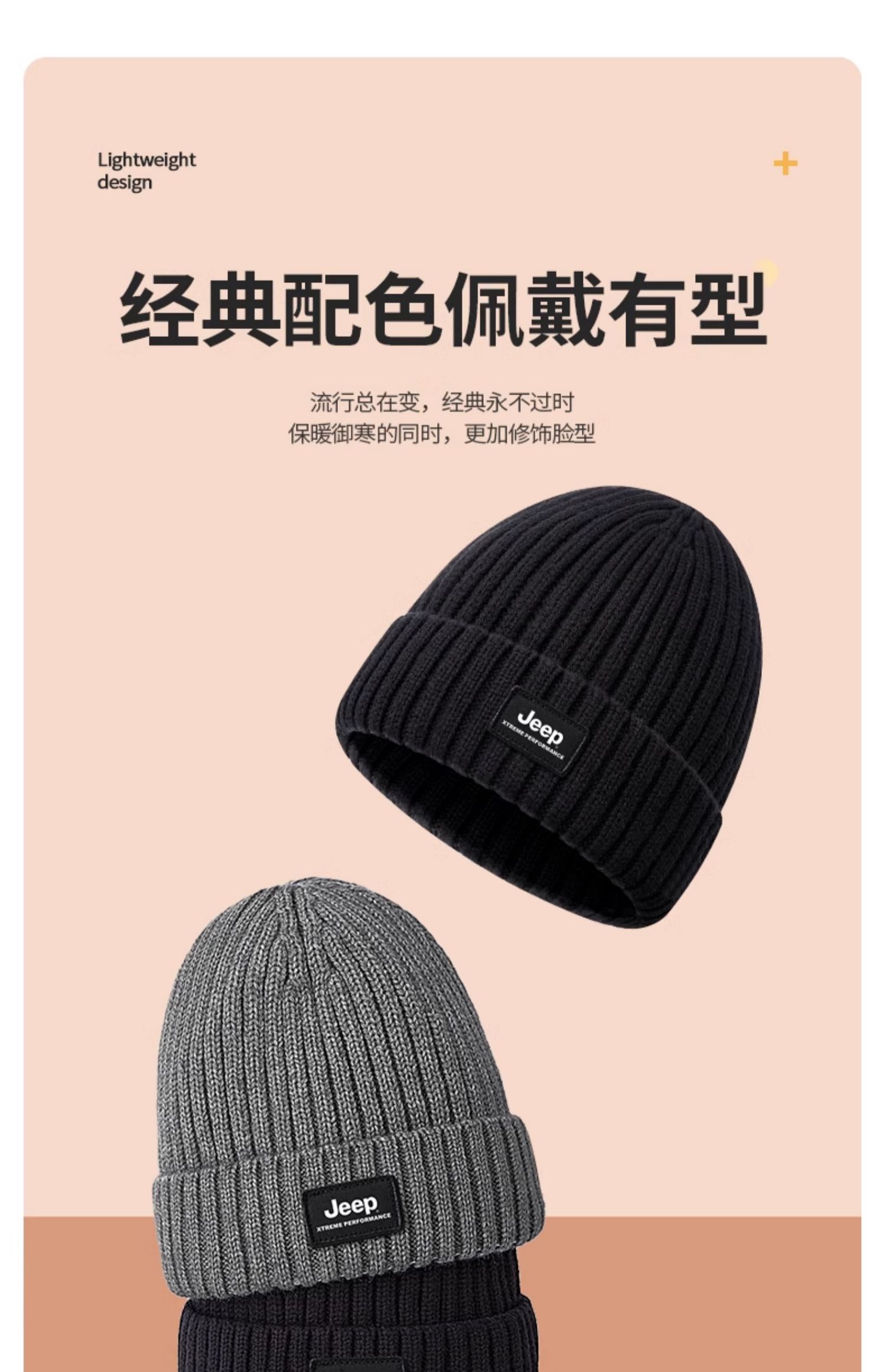 JEEP秋冬休闲毛线帽套头护耳针织帽登山帽徒步骑车保暖时尚冷帽HB018