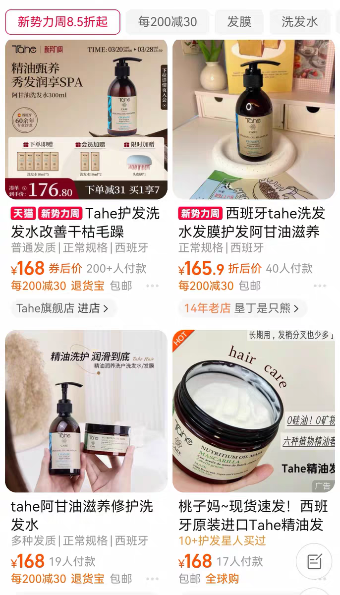 【品名】沙龙级西班牙T*he阿甘油 精油洗发水100ml/支