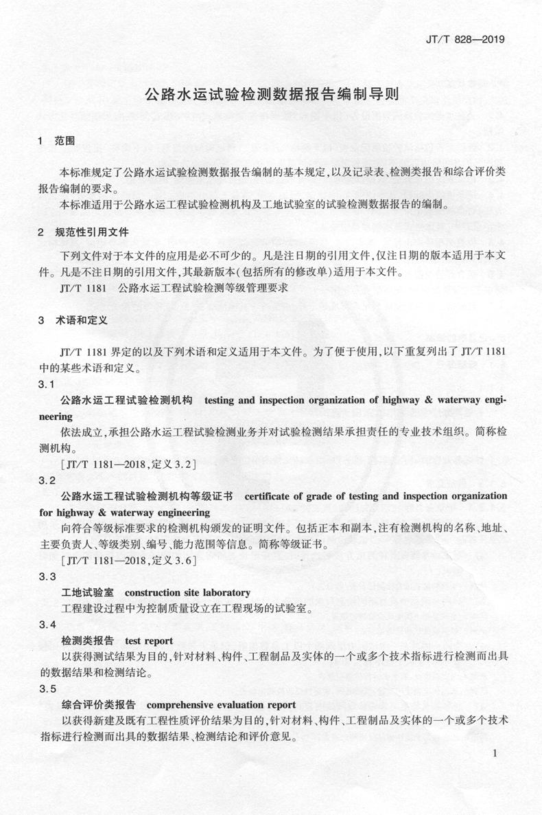 | 公路水运试验检测数据报告编制导则(JT/T 828—2019) | ||