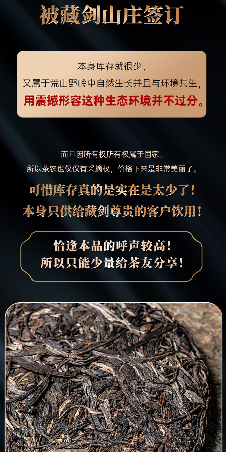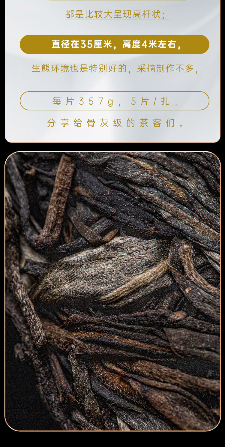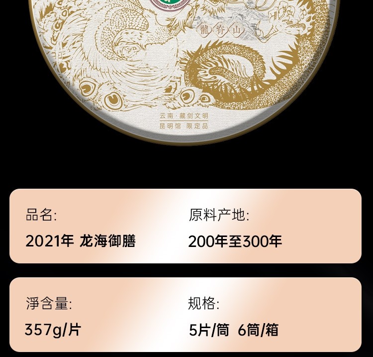 【藏剑山庄】昆明馆限定 龙海御膳第一代!龙脊山高端古树纯料青饼!2021年郭少华监制! 357克/片!5片/提!