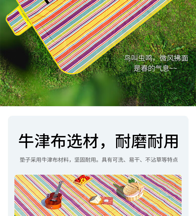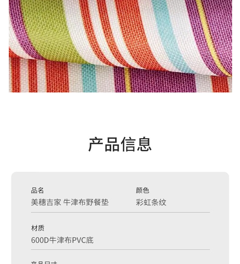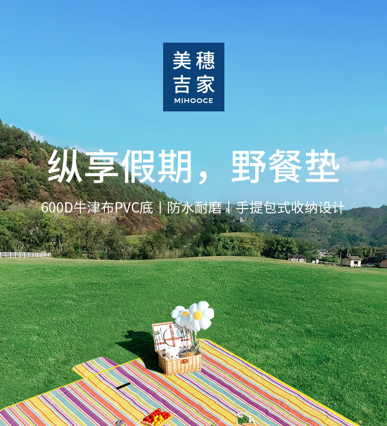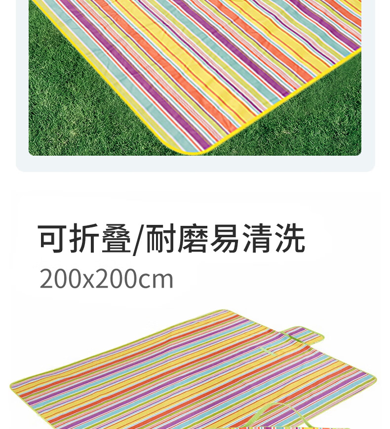 美穗吉家(mihooce)野餐垫户外露营地垫沙滩防水防潮野炊布野外春游垫子 彩虹条纹200*200cm