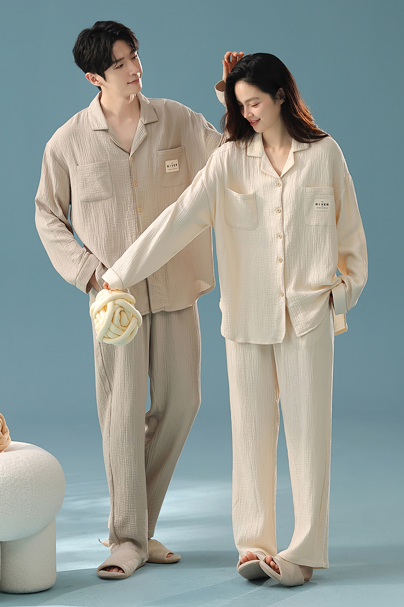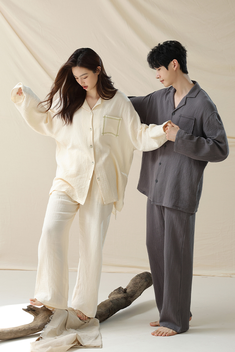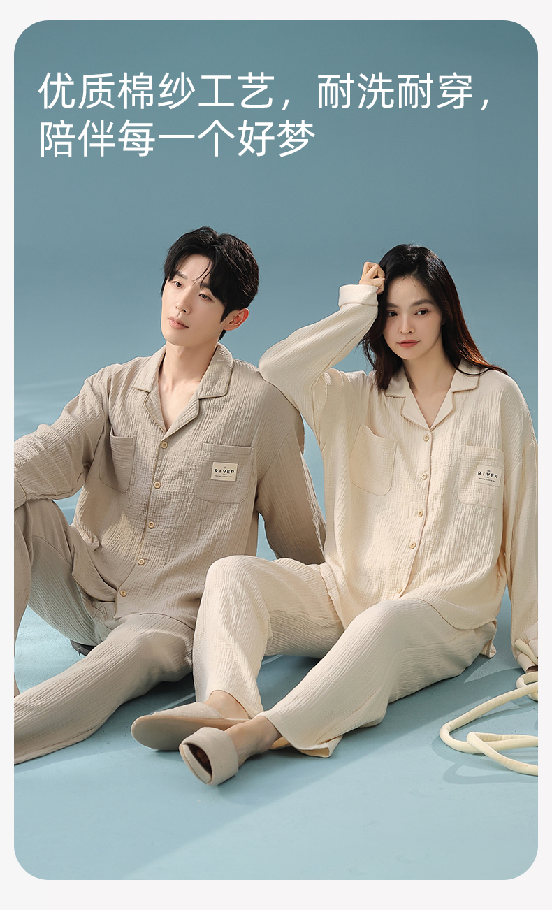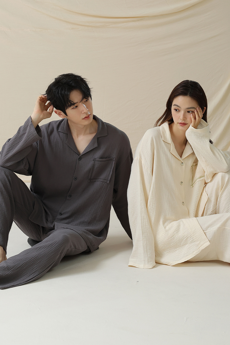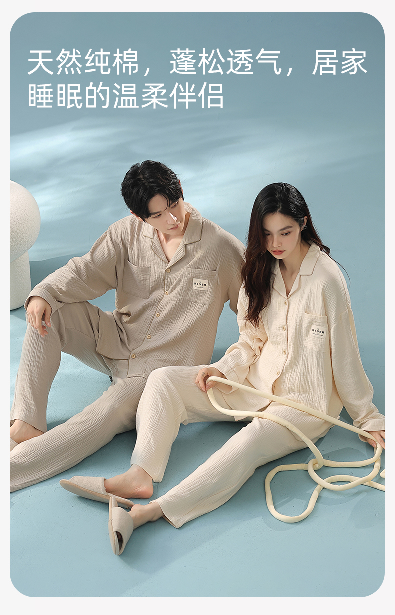 【透气婴儿棉】自然醒「椰椰奶泡」双层纱秋季柔软全棉情侣长袖睡衣A类简约家居服套装JLM