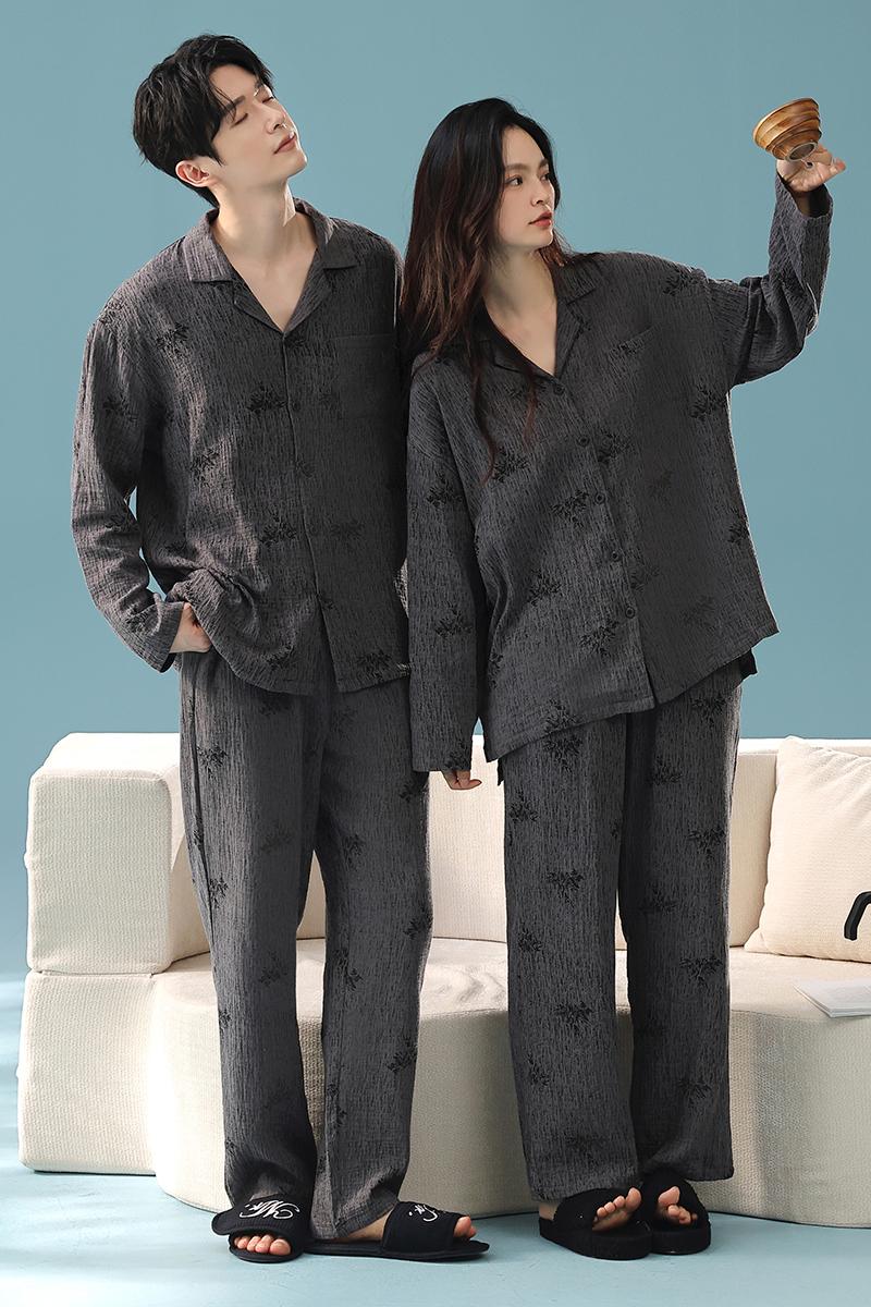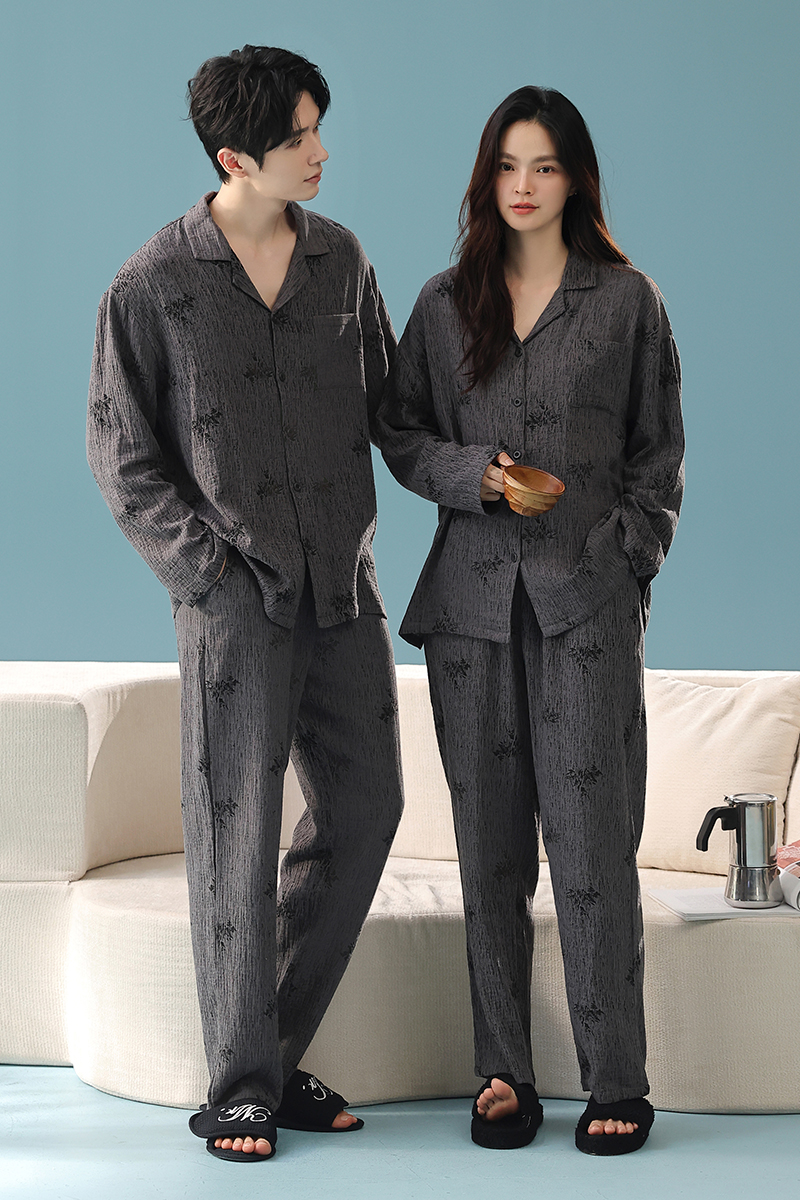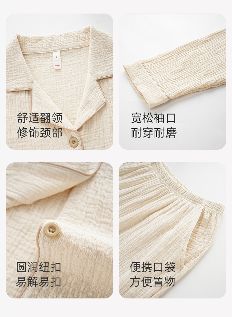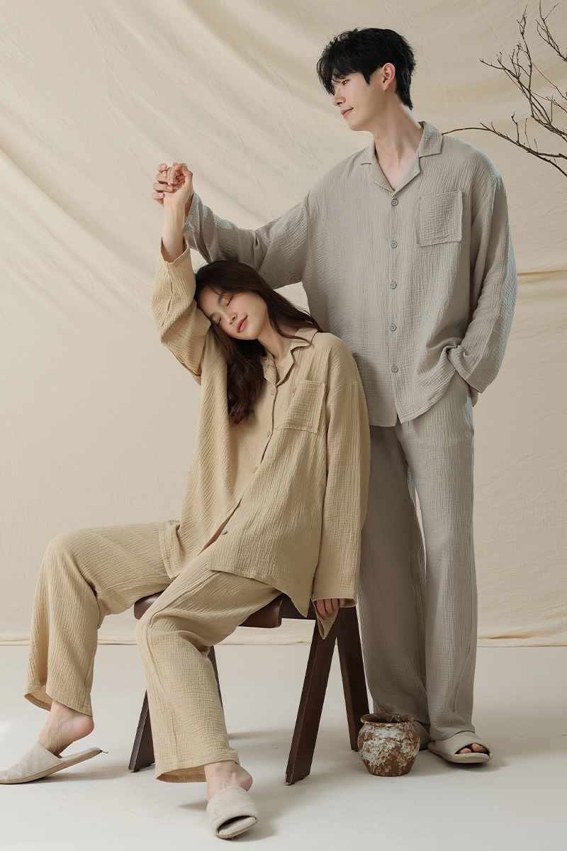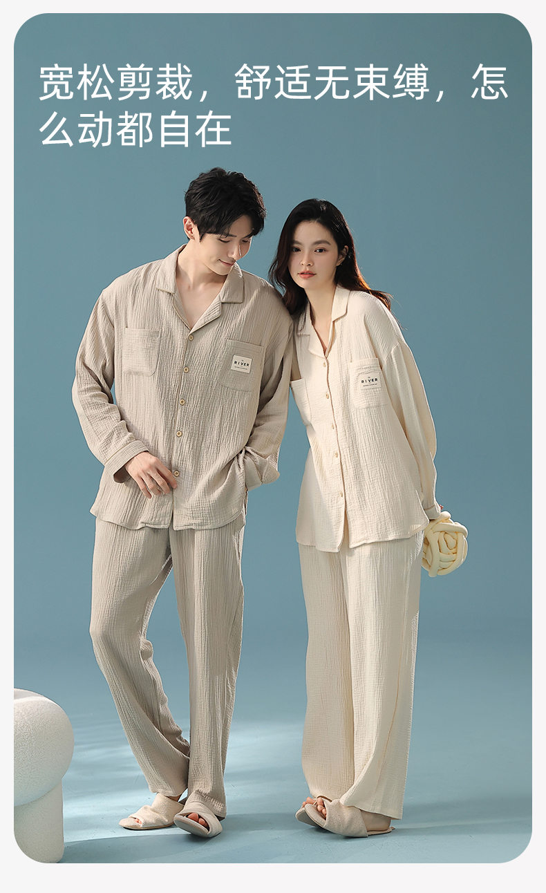 【透气婴儿棉】自然醒「椰椰奶泡」双层纱秋季柔软全棉情侣长袖睡衣A类简约家居服套装JLM