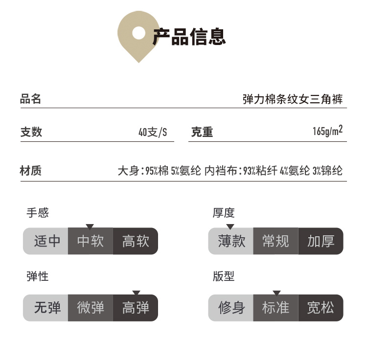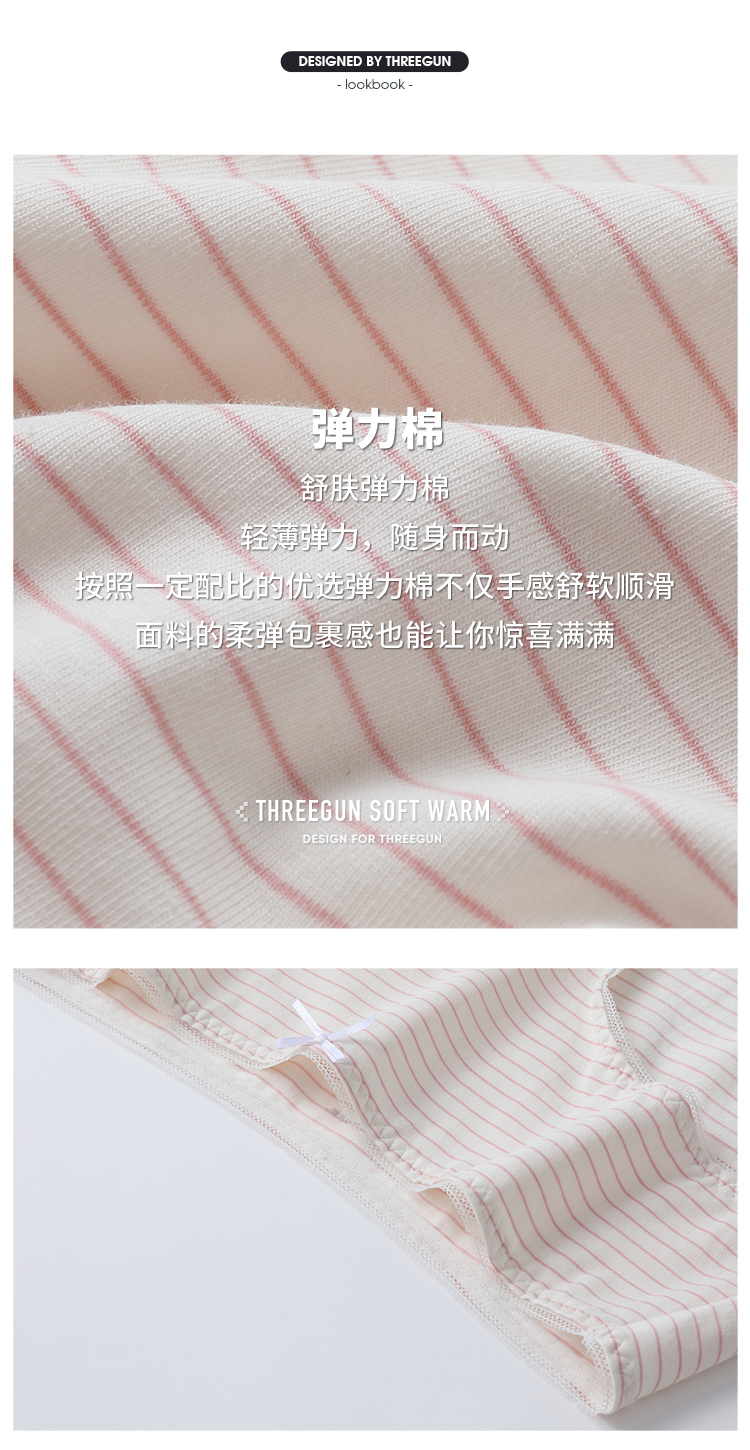 Threegun三枪 弹力棉条纹女三角裤-40812B0P1