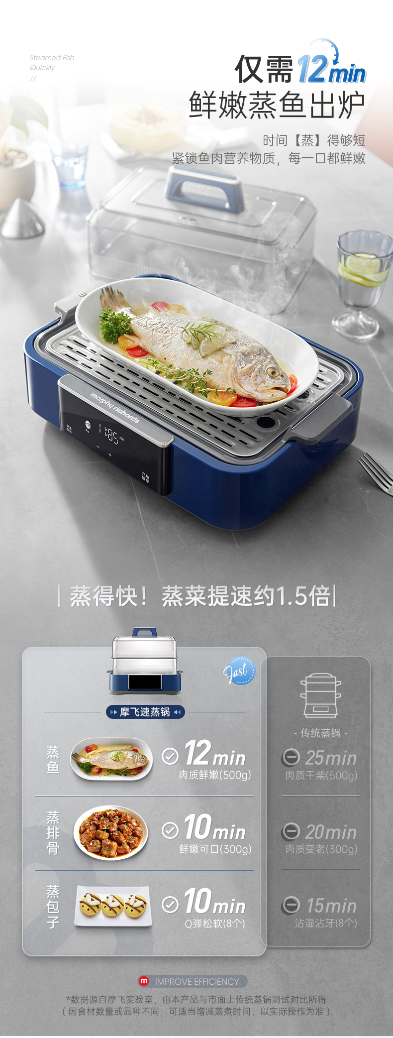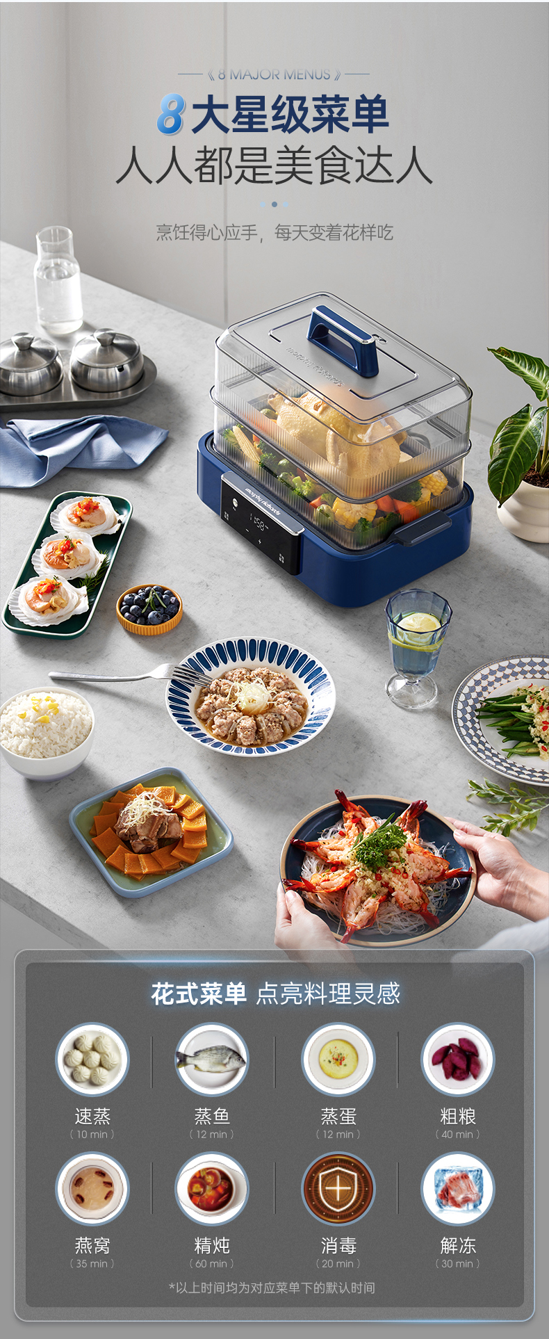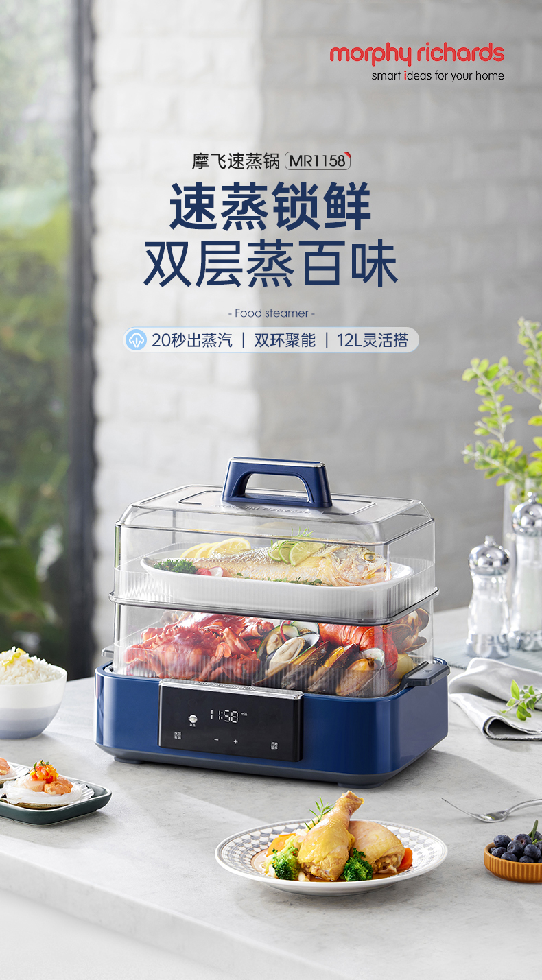 摩飞速蒸锅电蒸锅MR1158 多功能锅家用12L大容量预约定时保温电炖锅隔水炖煮