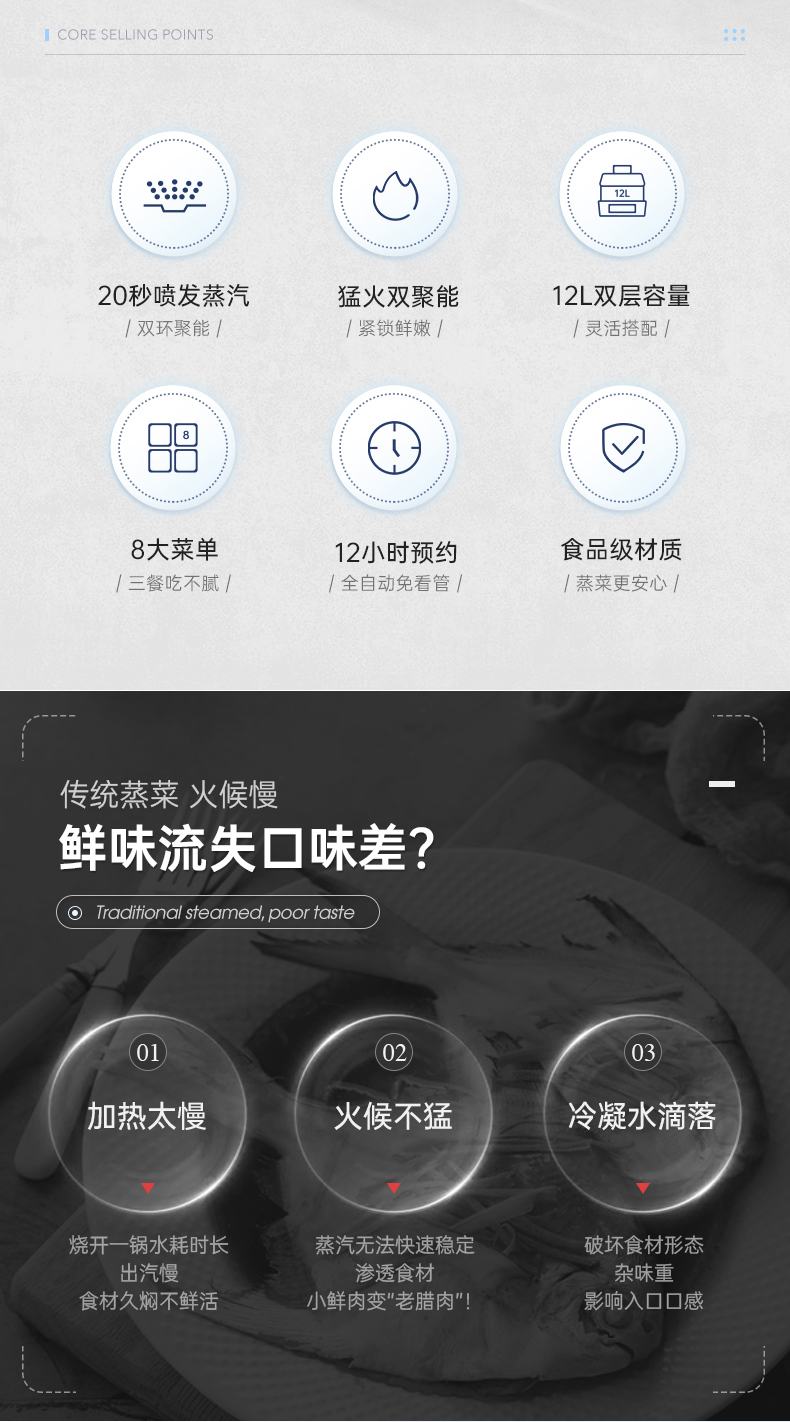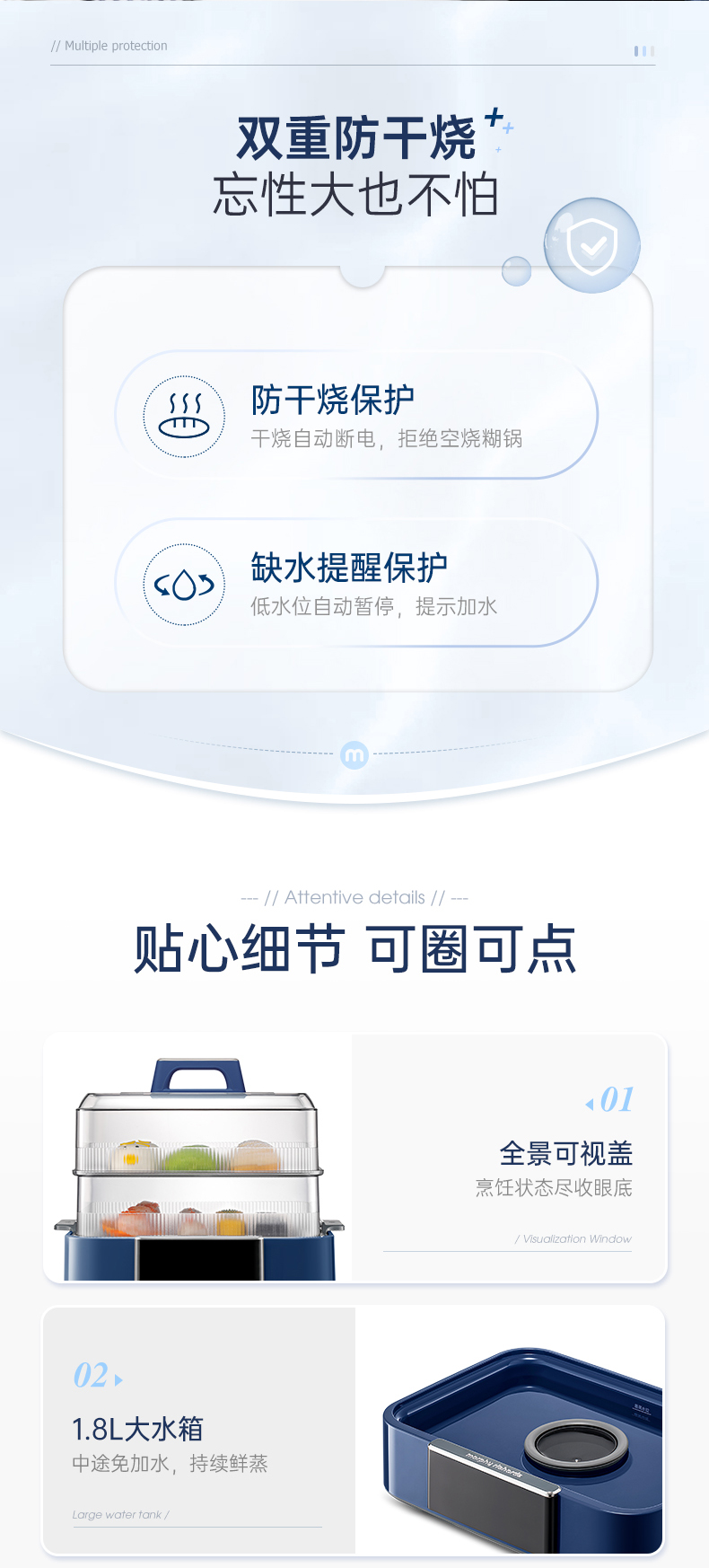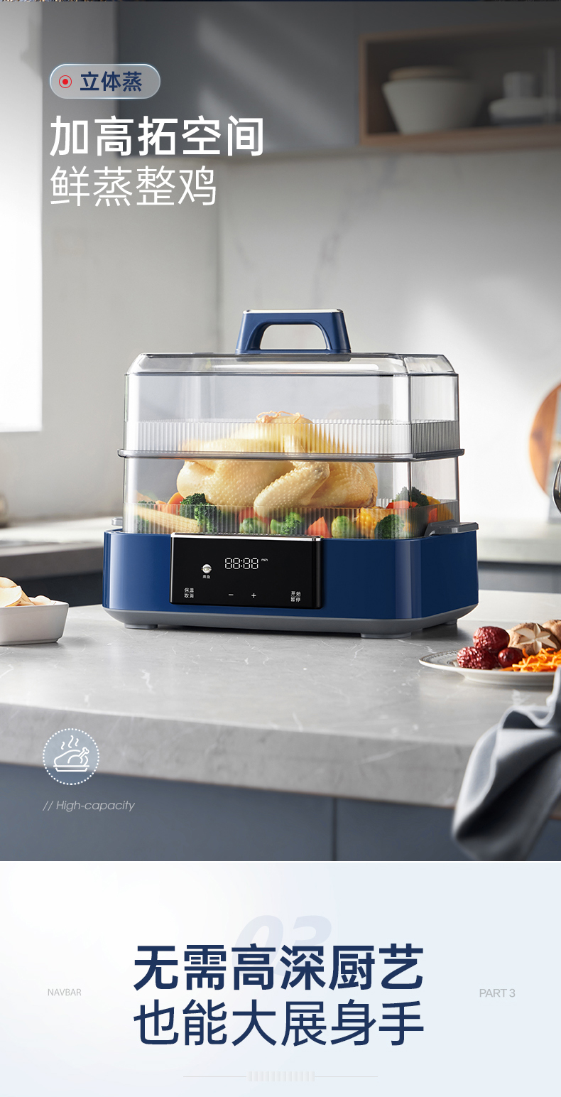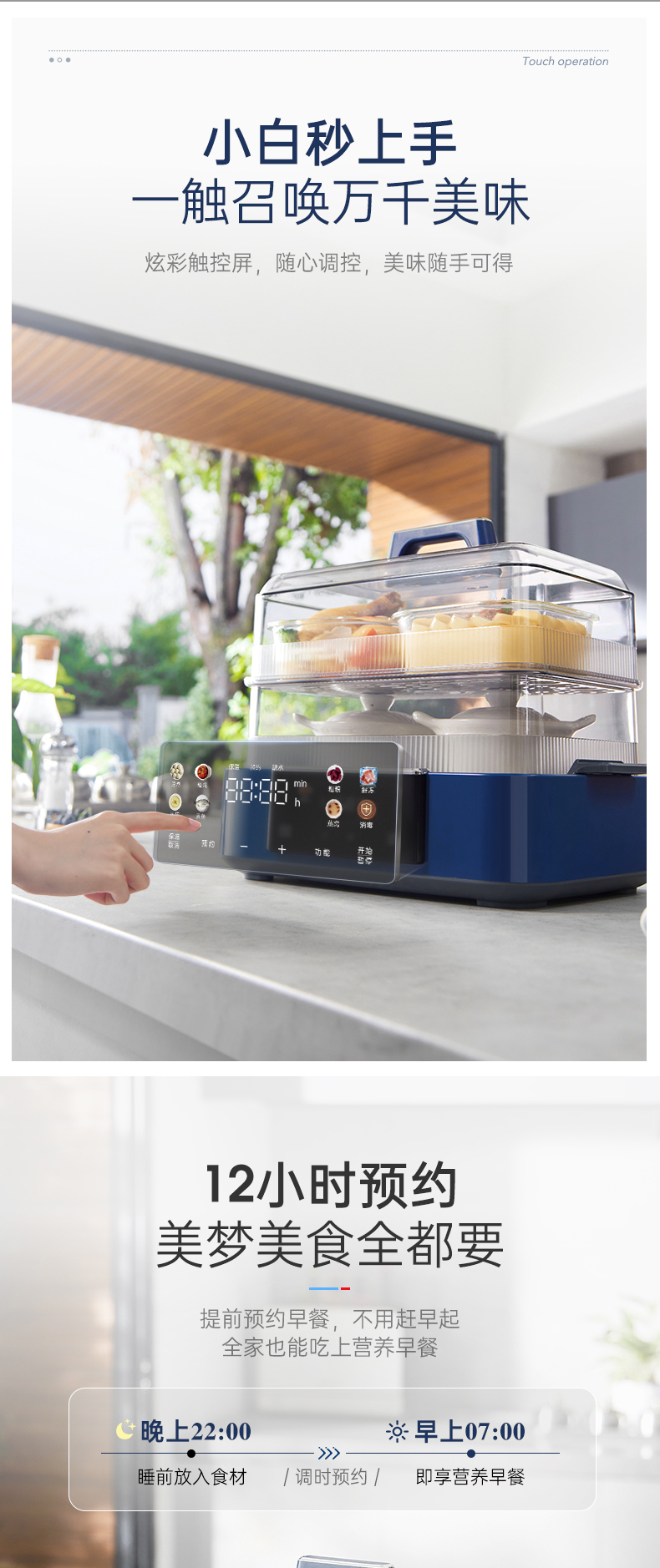 摩飞速蒸锅电蒸锅MR1158 多功能锅家用12L大容量预约定时保温电炖锅隔水炖煮