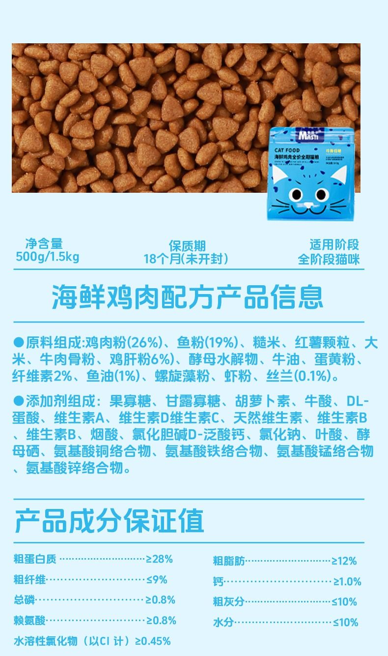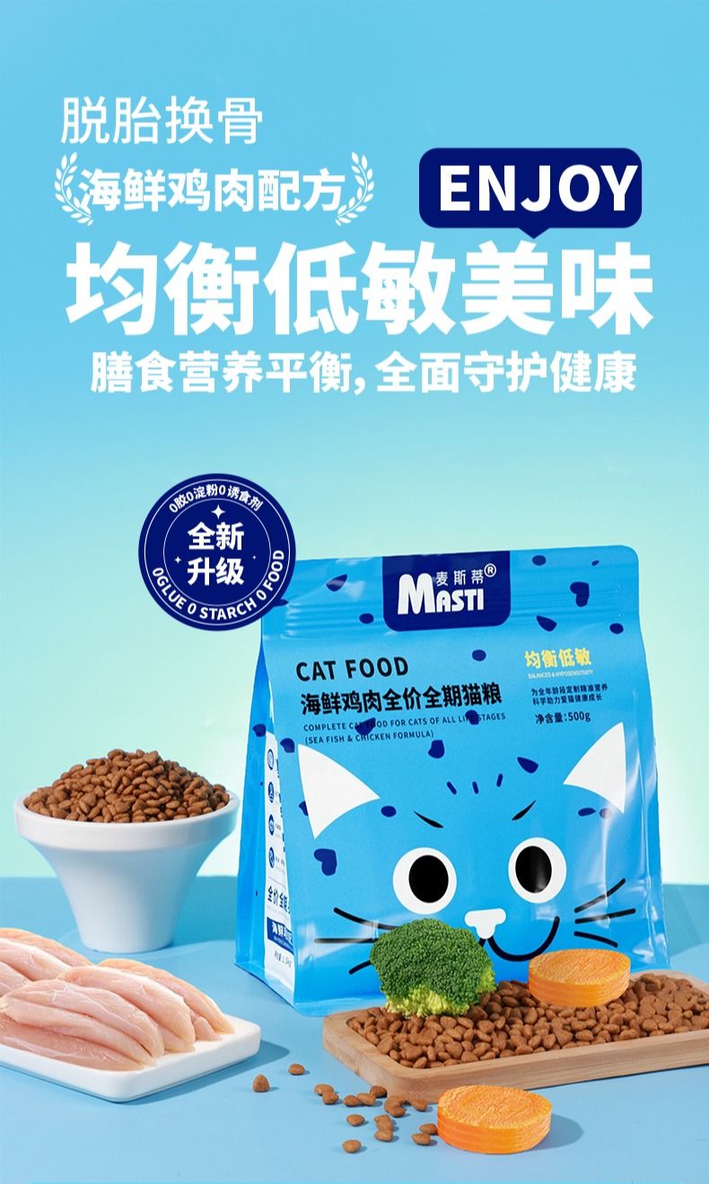 麦斯蒂猫粮全价增肥深海鱼鸡肉营养发腮成幼猫粮500g/袋