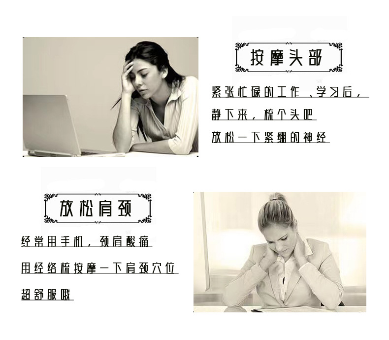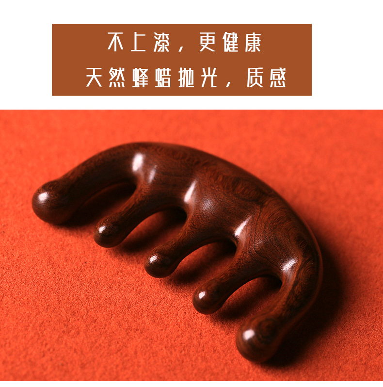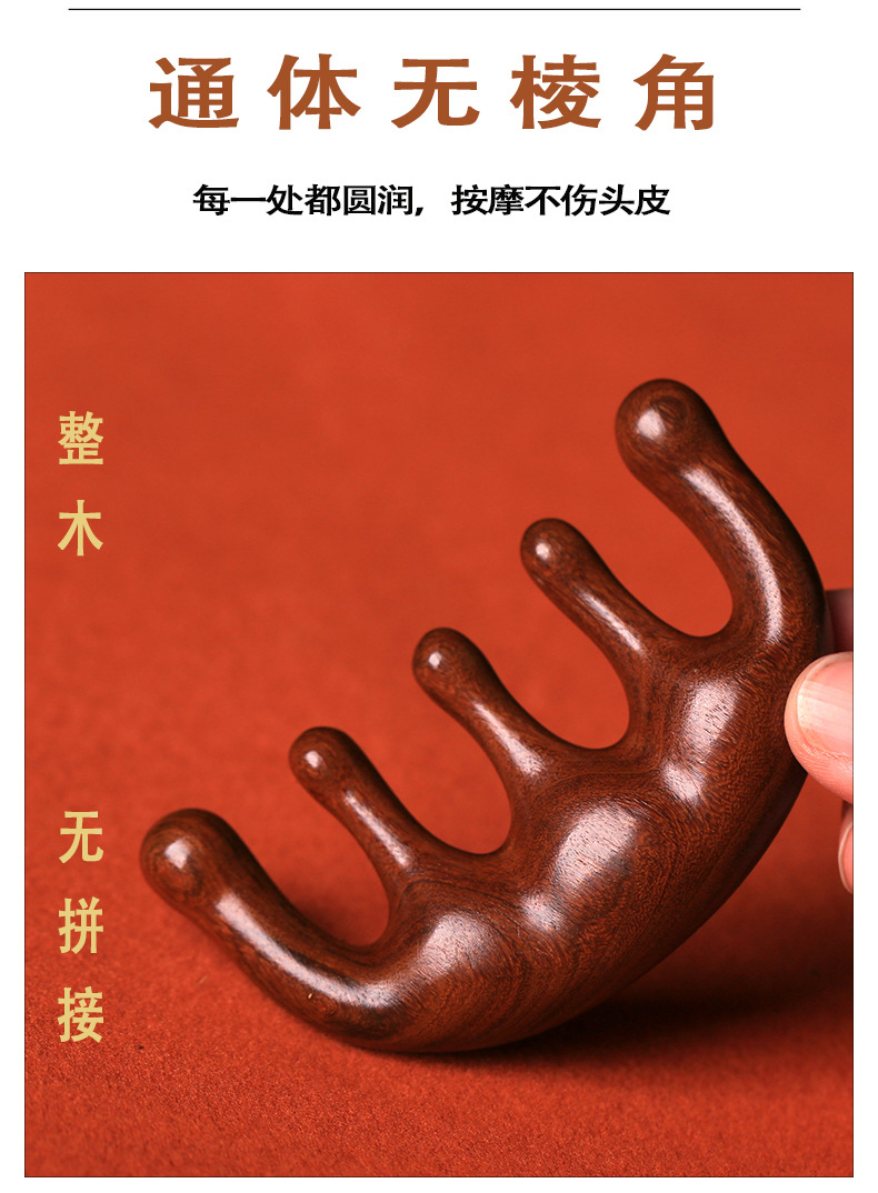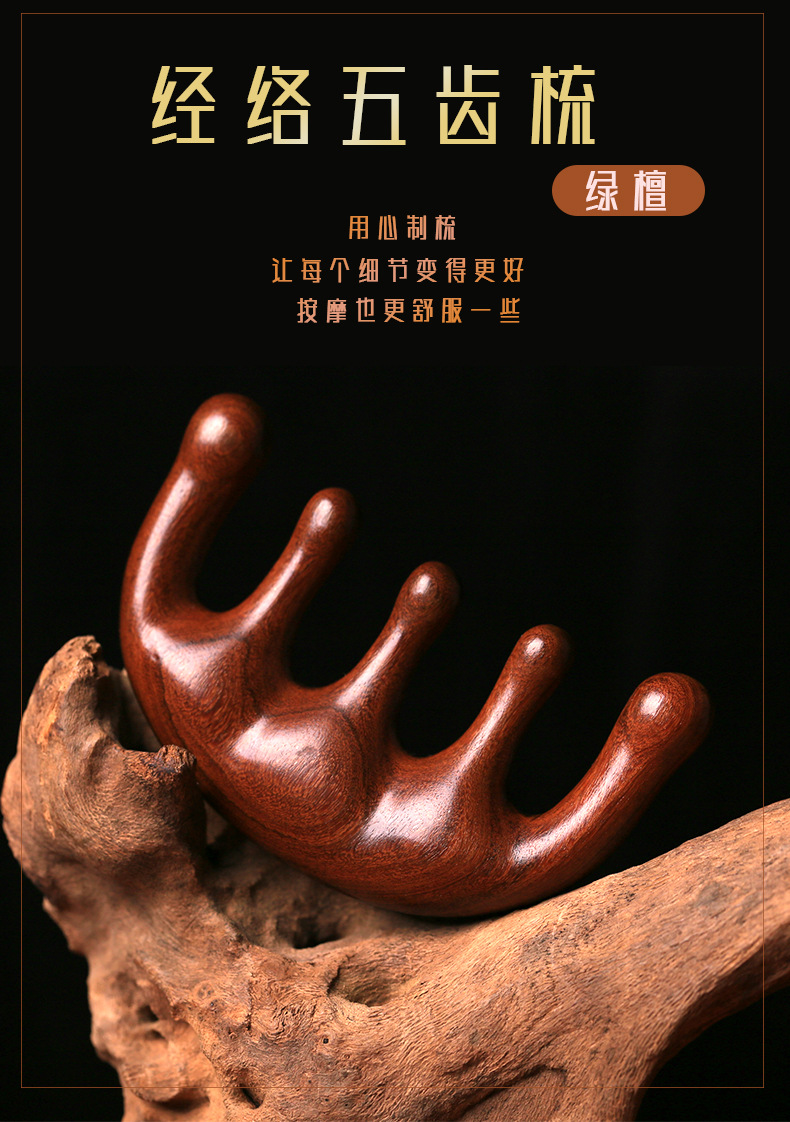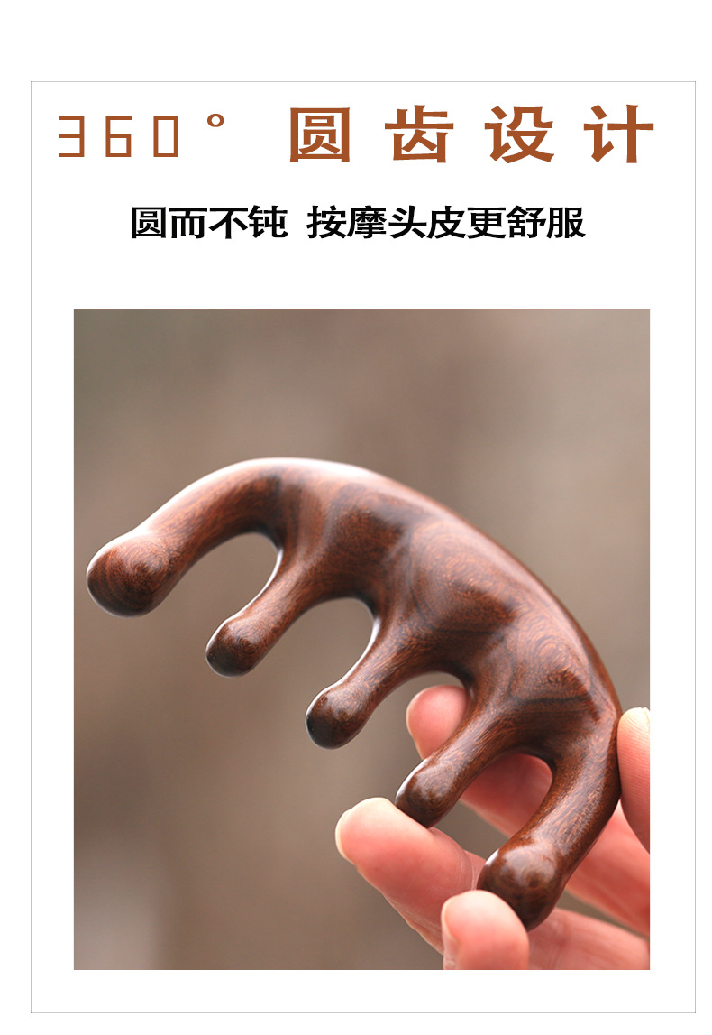 檀木经络按圆而不钝 按摩头皮更舒服摩五齿梳子