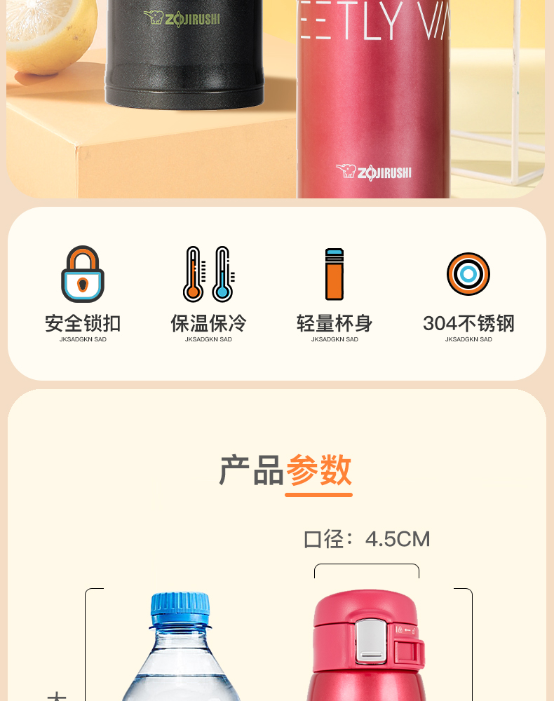 象印ZOJIRUSHI不锈钢真空保温杯男女时尚便携车载大容量进口水杯