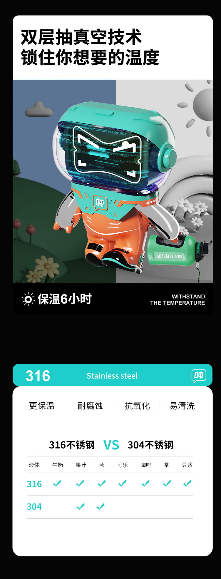 【渐变保温畅吨吨】渐变畅吨吨保温杯便携防摔316不锈钢大容量可爱吸管杯
