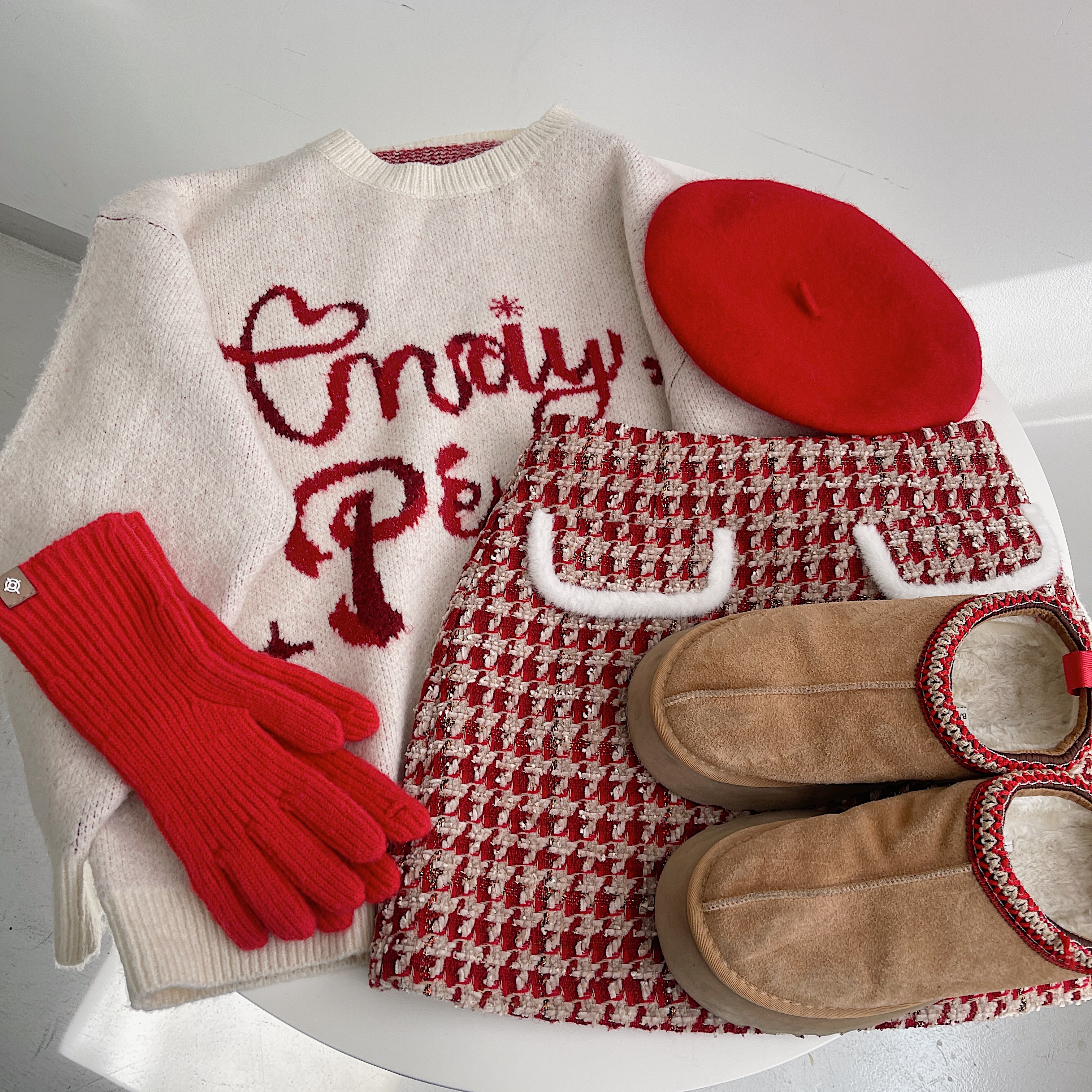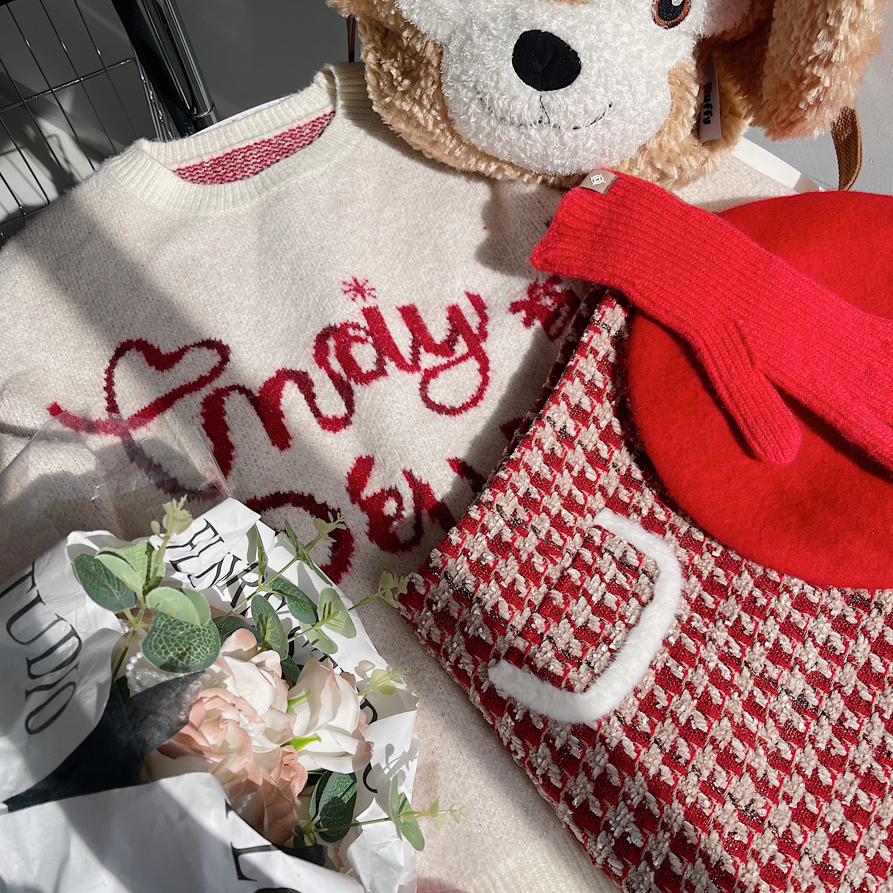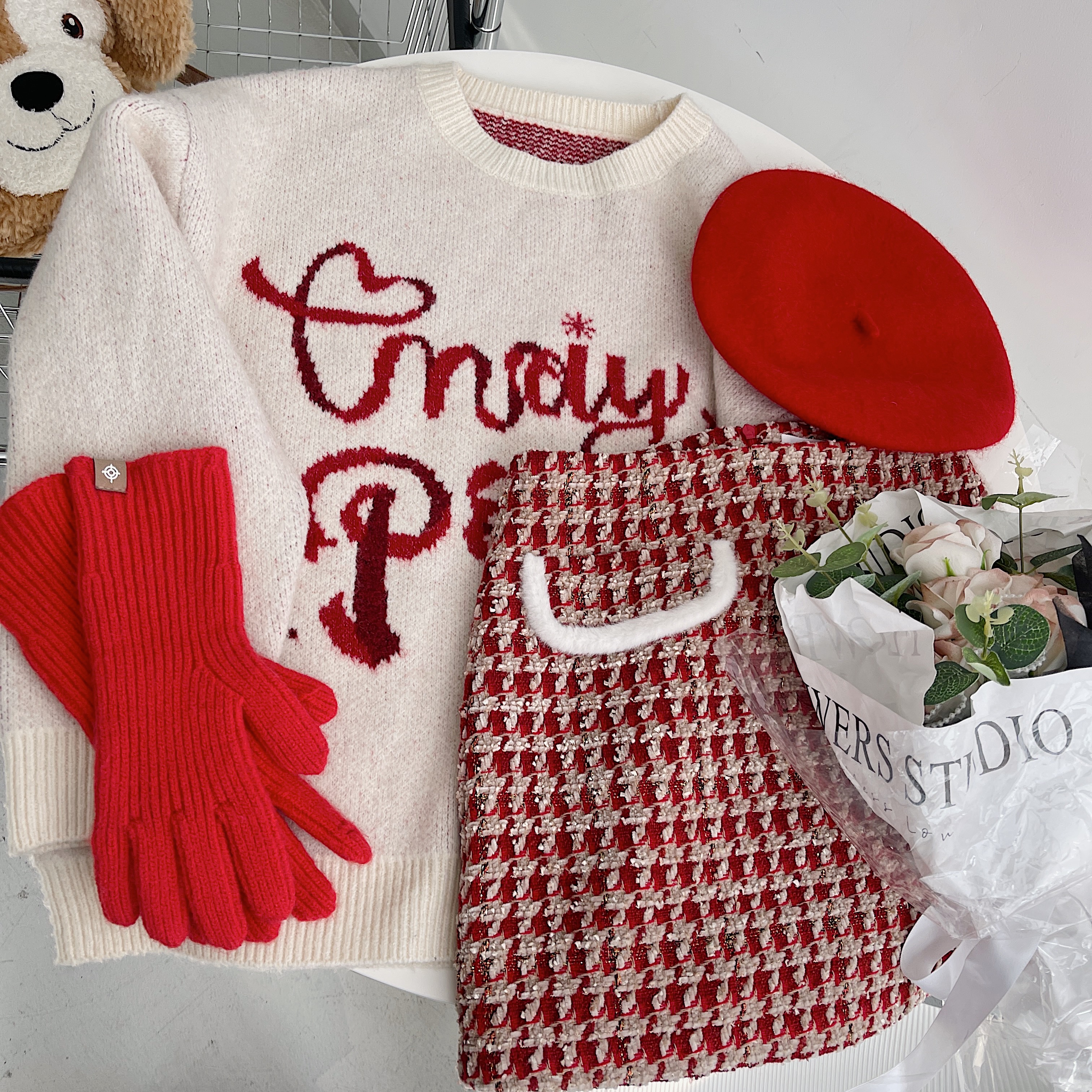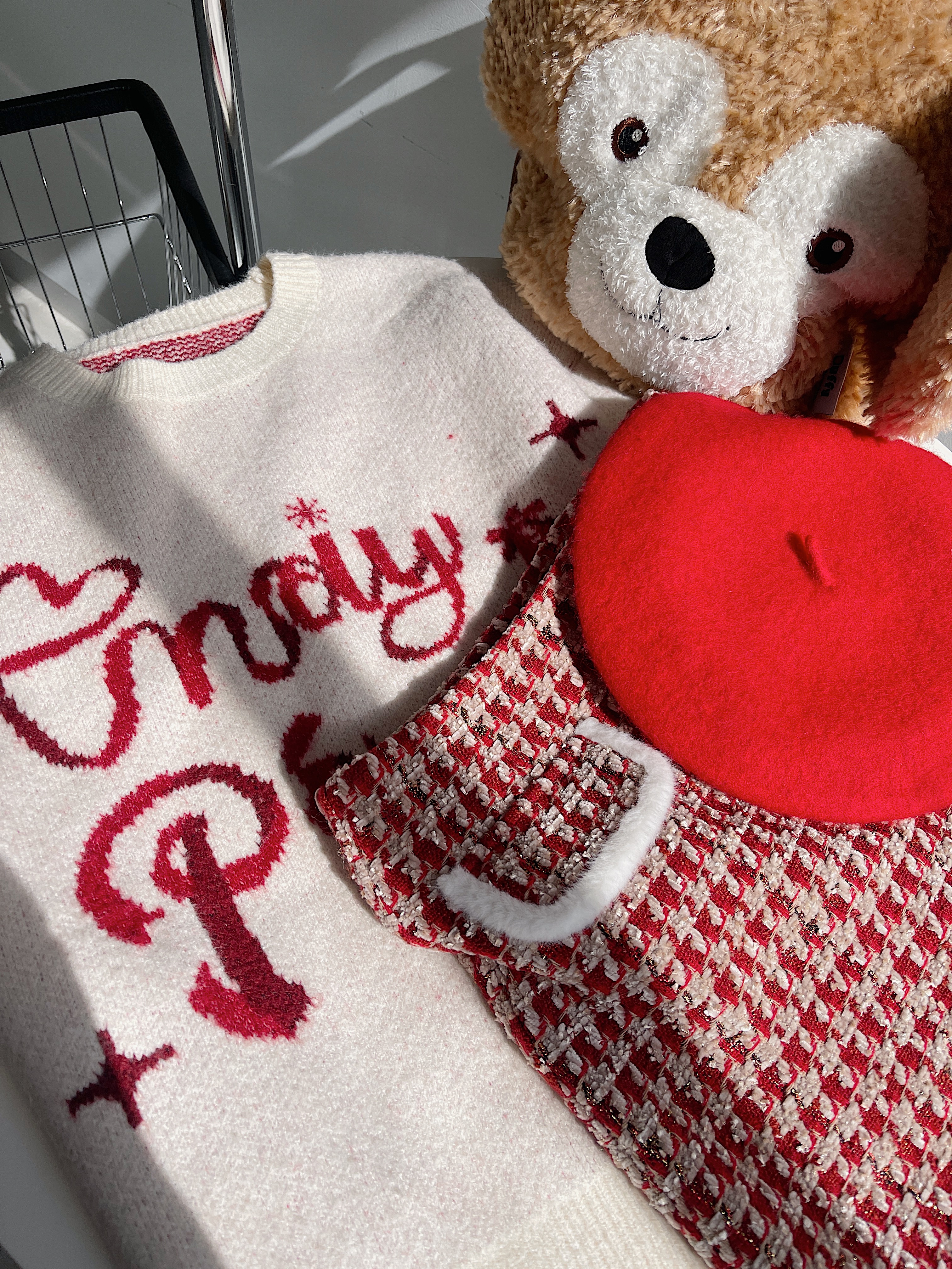 <曾小咸推荐>【圣诞情书】白色字母毛衣+红格半裙