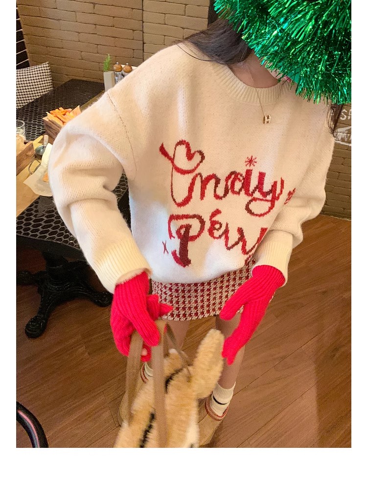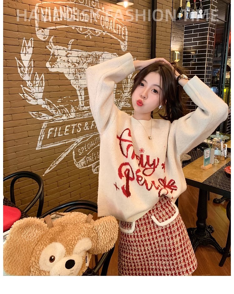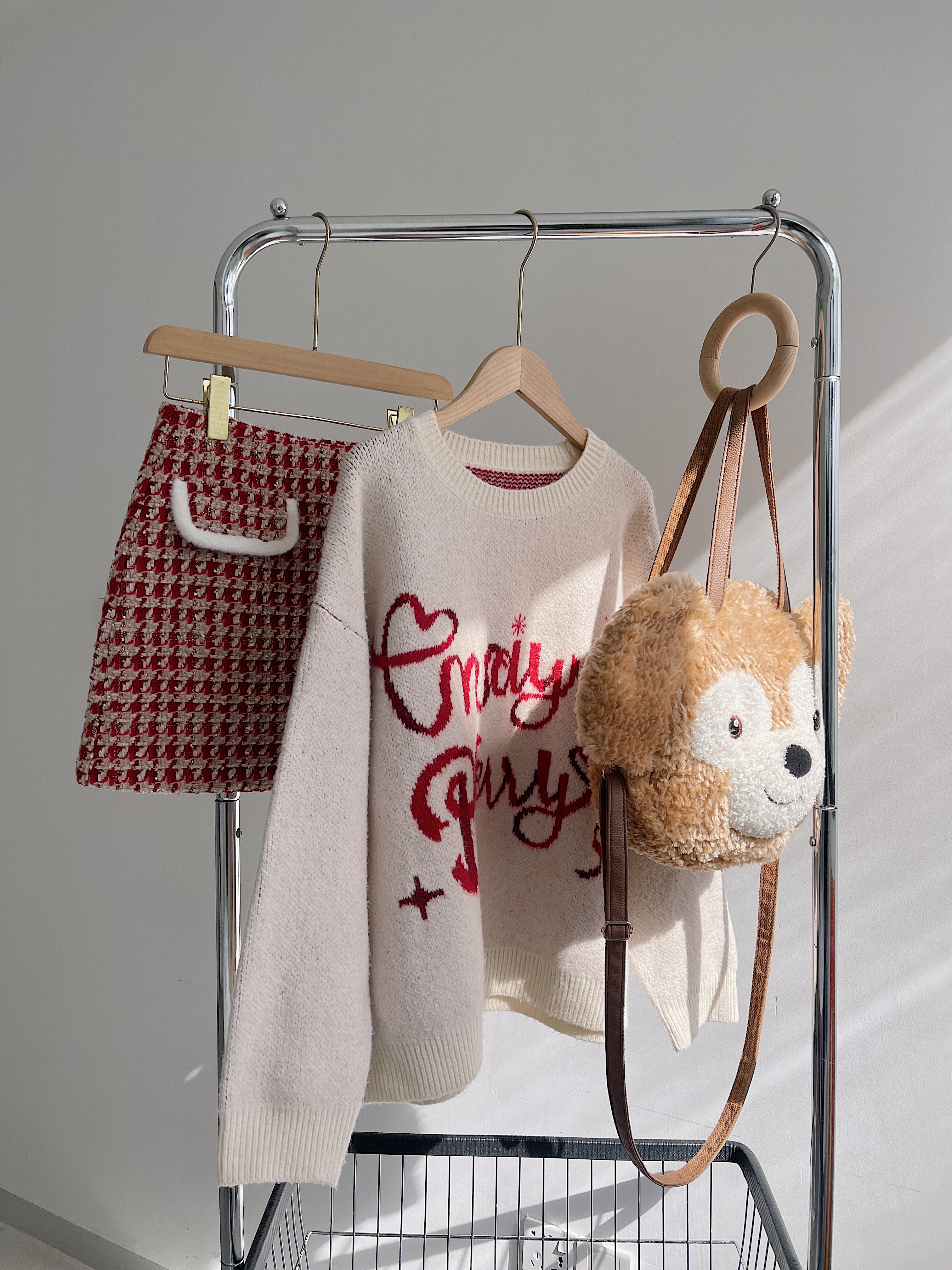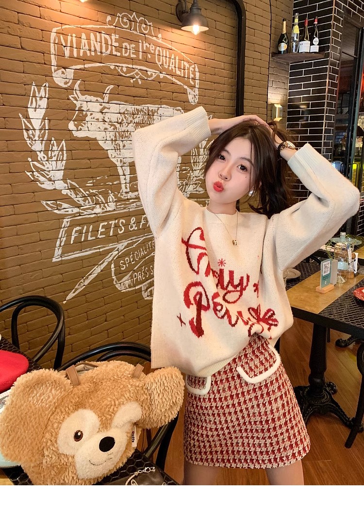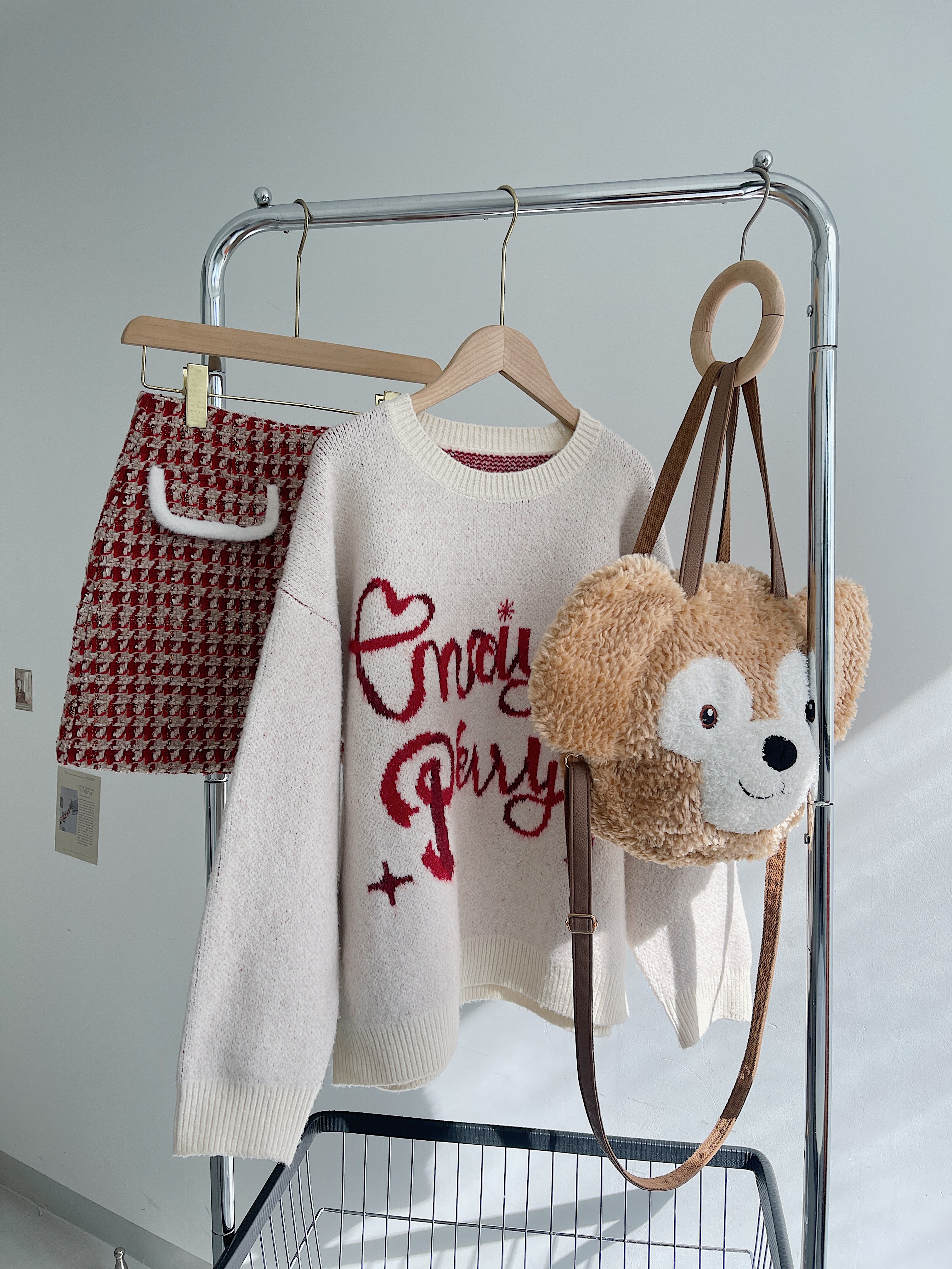 <曾小咸推荐>【圣诞情书】白色字母毛衣+红格半裙