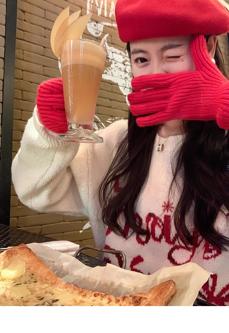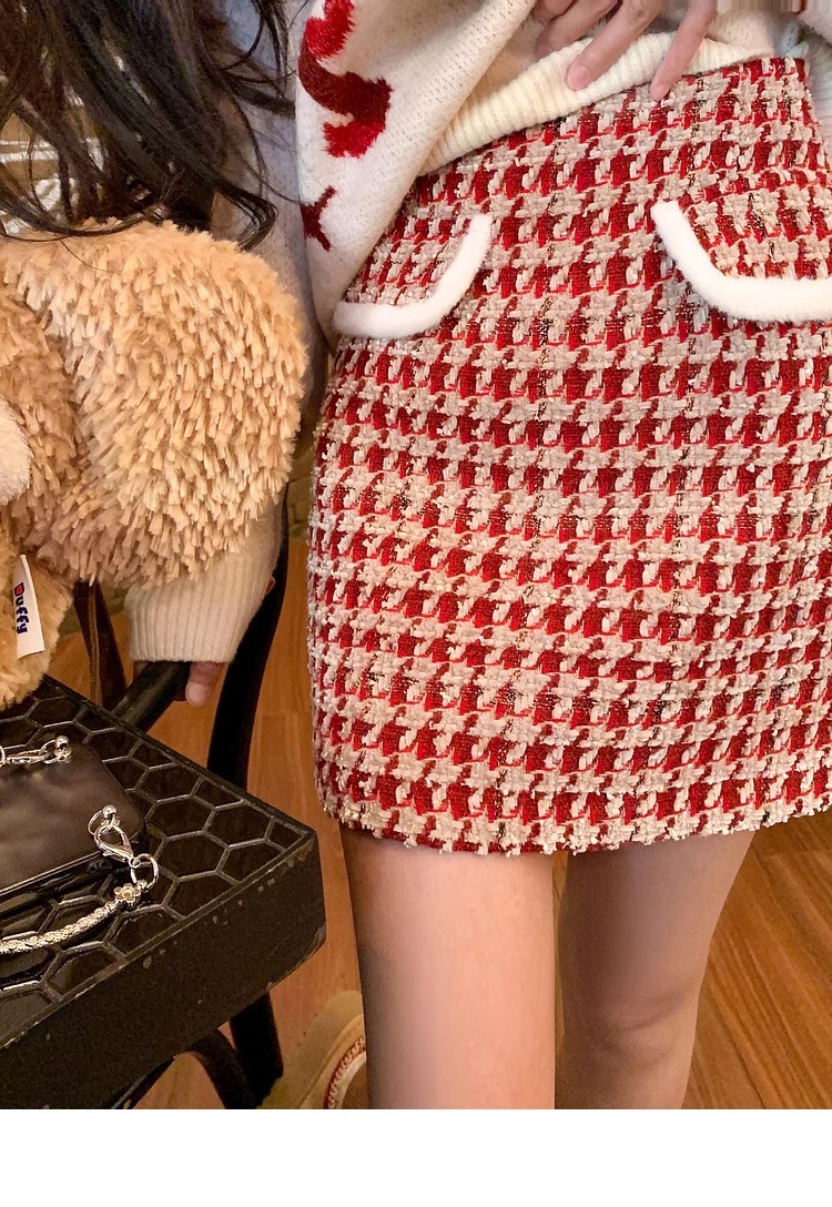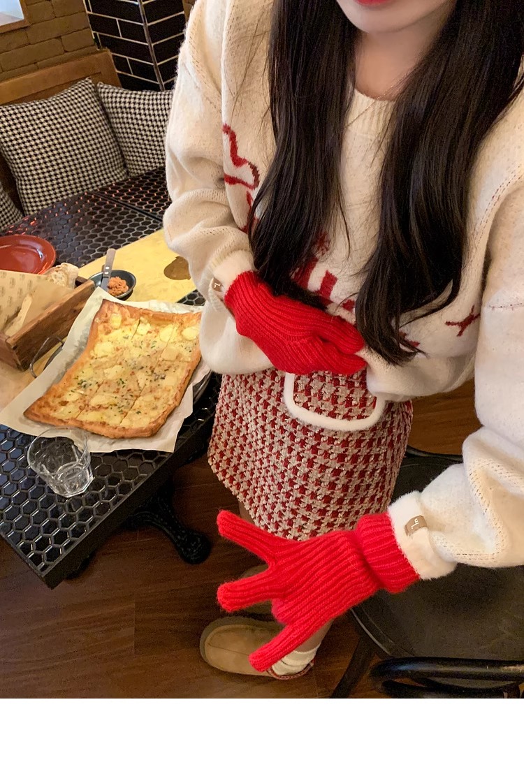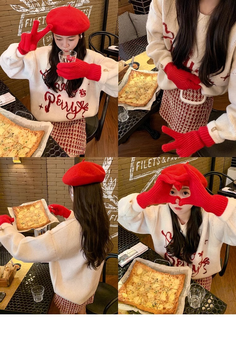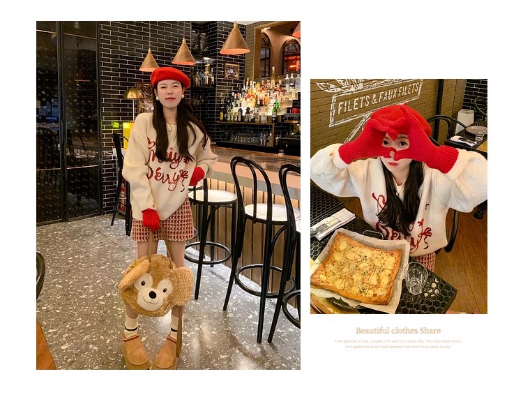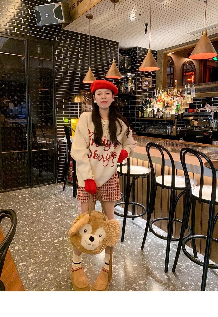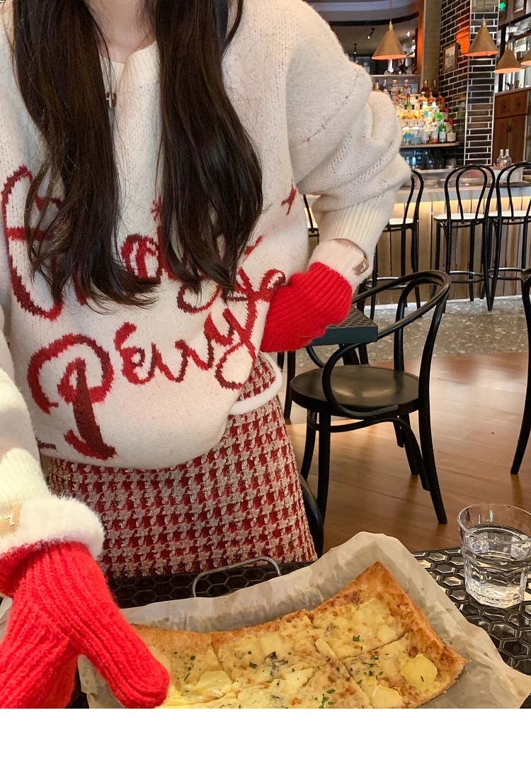 <曾小咸推荐>【圣诞情书】白色字母毛衣+红格半裙