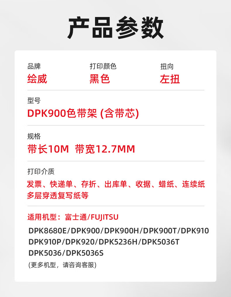 绘威DPK900色带架 适用富士通FUJITSU DPK900 DPK910 DPK510 920 8680E 6695K 5036 针式打印机色带