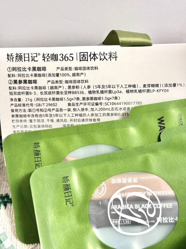 【生产时间】:绿燃黑咖啡 2024.8;摩卡黑咖啡 2024.7