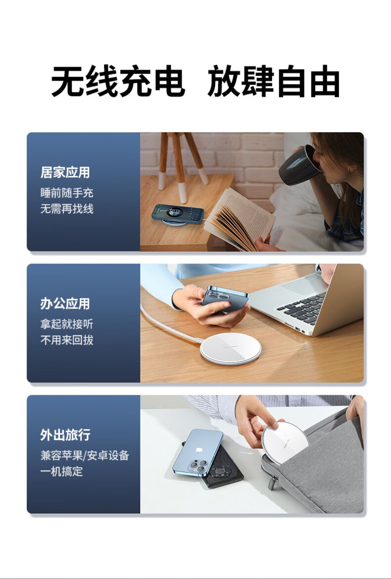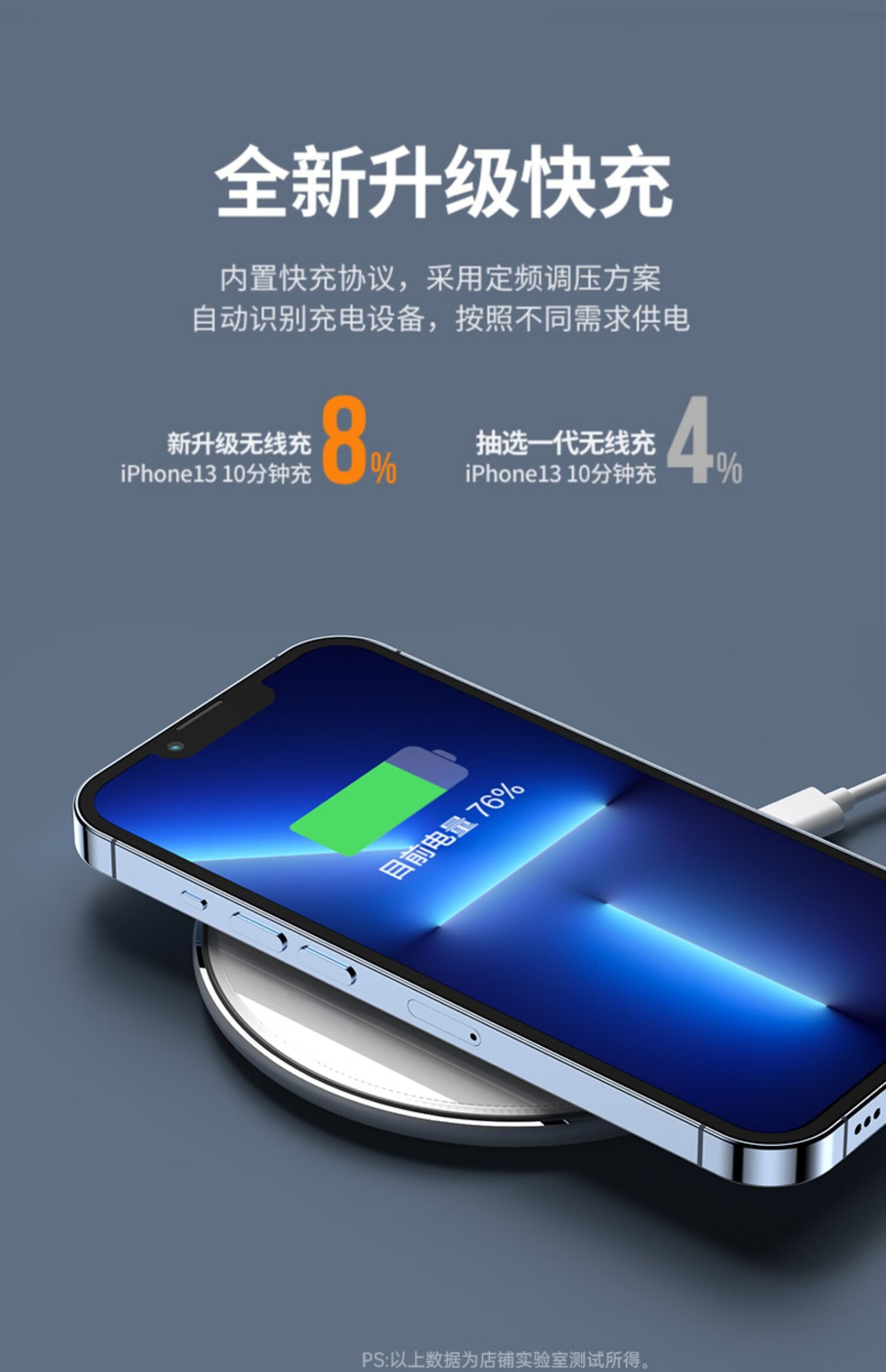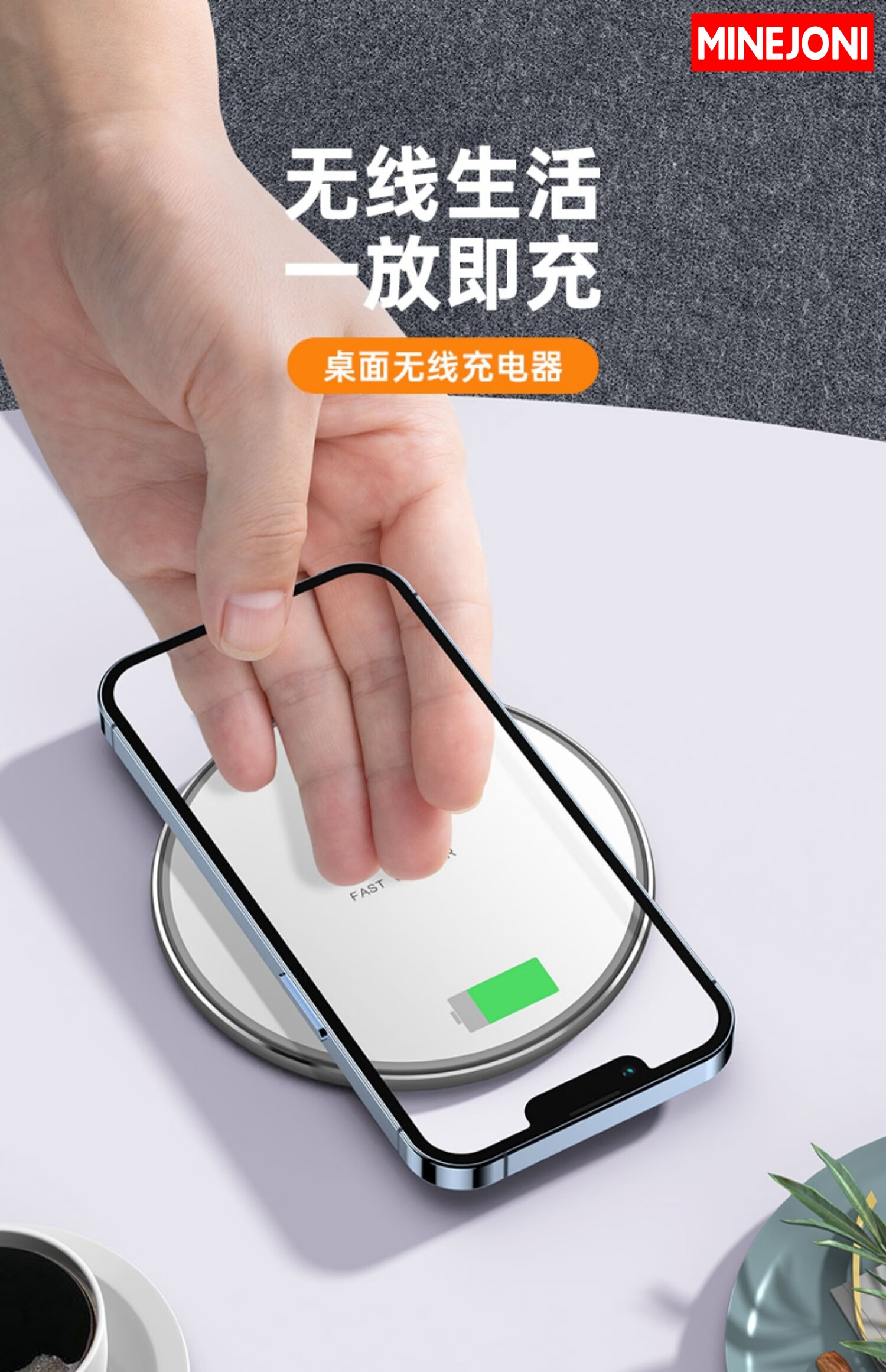 MINEJONI V15苹果8/9/10/11/12/13无线充电器适用于华为小米无线充电