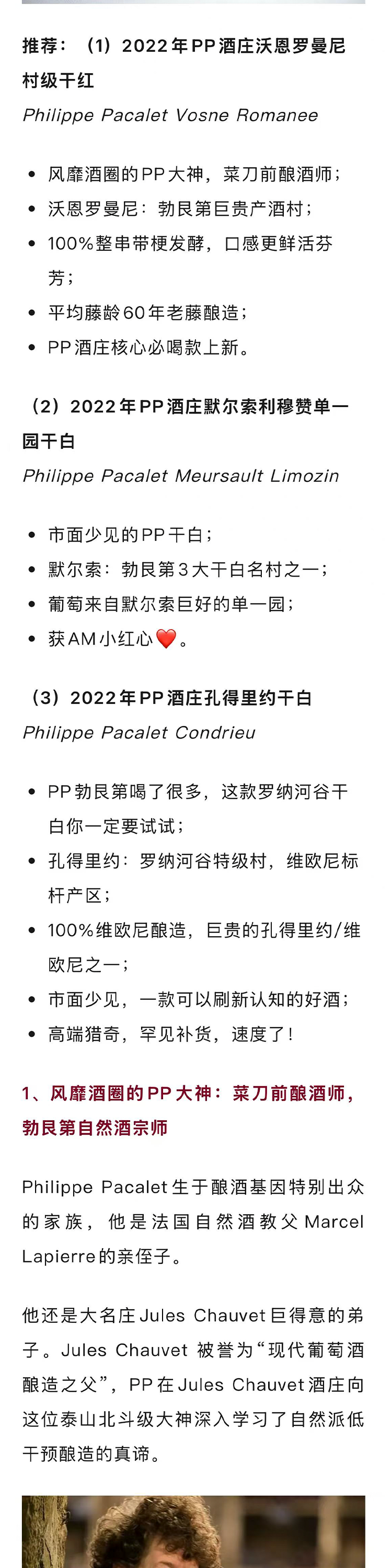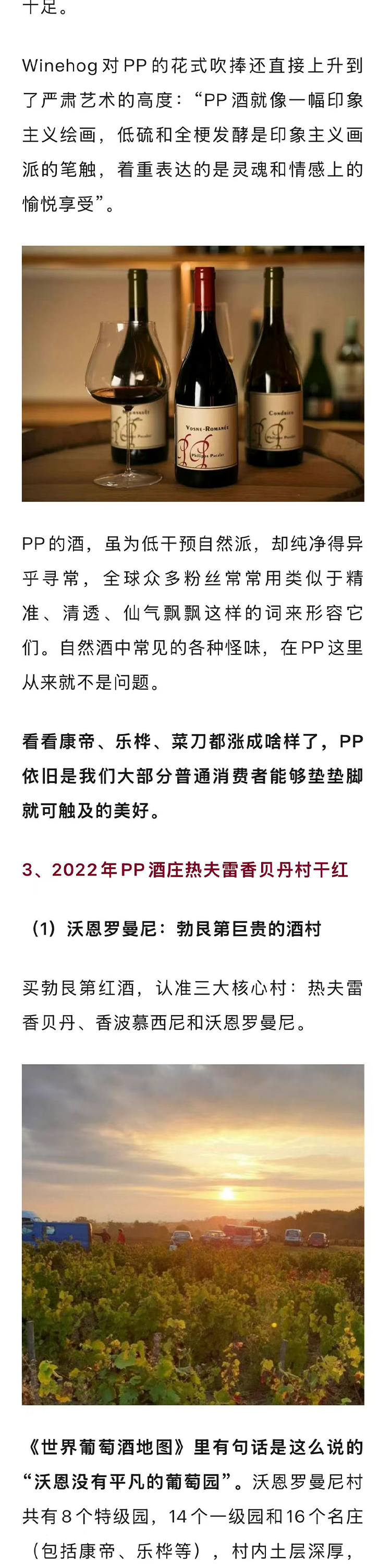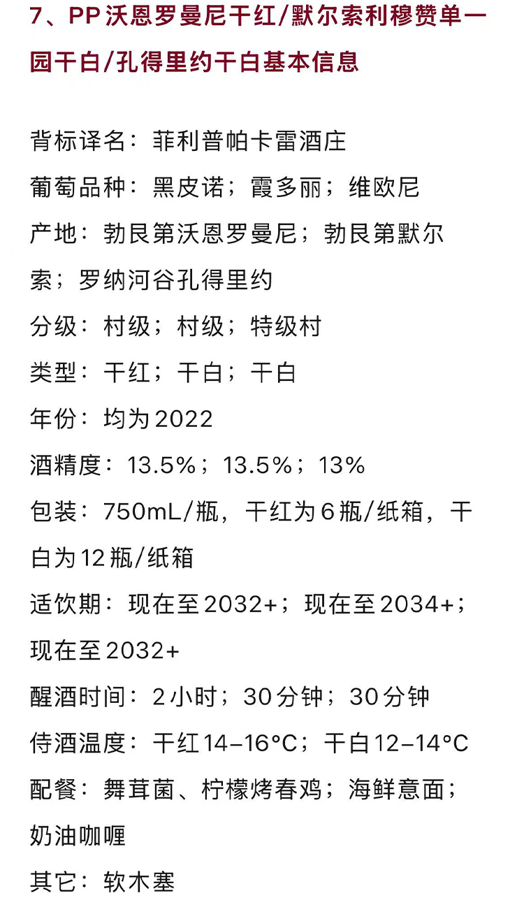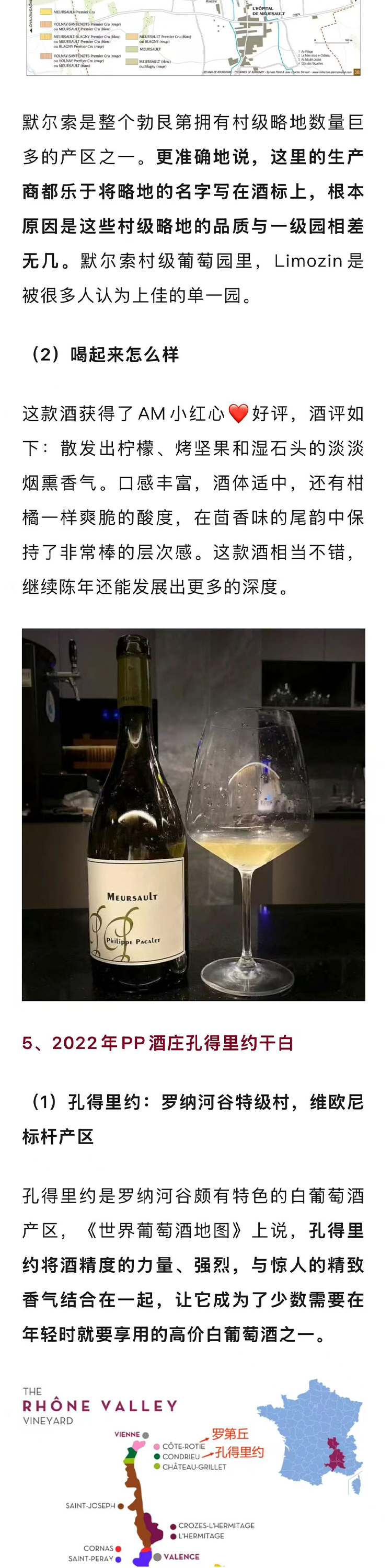 法国2022年勃艮第PP酒庄沃恩罗曼尼村级黑皮诺干红/默尔索利穆赞单一园霞多丽干白/罗纳河谷孔得里约维欧尼干白
