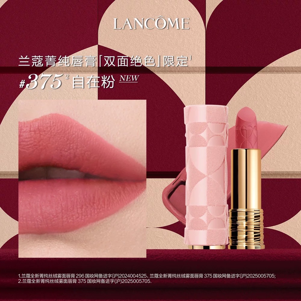 兰蔻26年情人节全新菁纯丝绒丝绒雾面唇膏3.4g#375 带礼盒礼袋