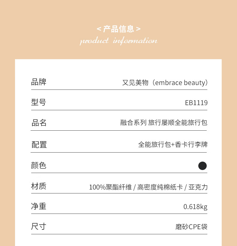 又见美物 旅行包 融合系列旅行屡顺全能旅行包 EB1119